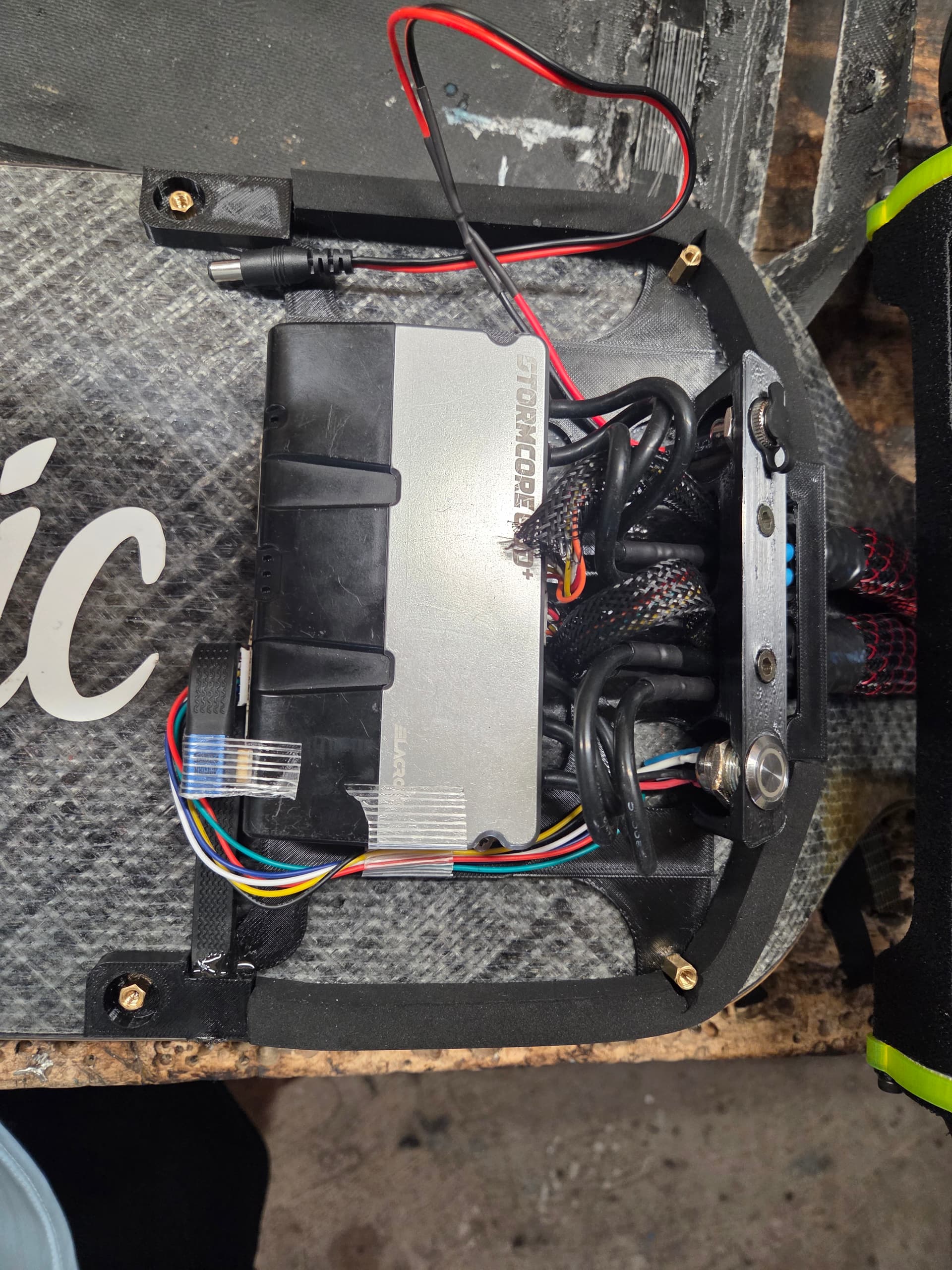 Im also working on a frame for the stormcore, usb pass through, power button and charge port. This way the enclosure can act as a gaurd rather than the container. I had to order stainless stand offs, right now im testing the heights with brass.