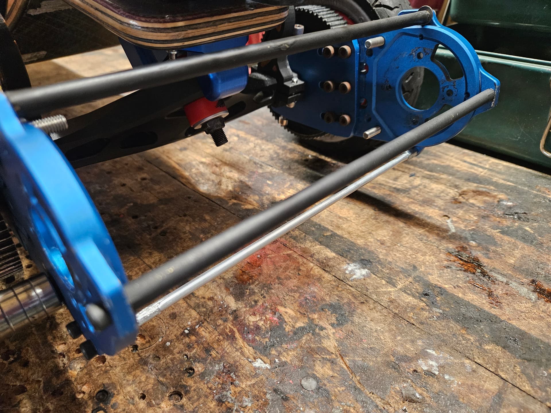 The petg housing and petg hanger adapter/wheel gear bearing holder concerns me. Like if I hit a bump or something it might crack, but my thought is that the gear is more or less supported by the supported by the hub bolts anyway.. im going to add pictures to this post in a minute for better clarity of possible faluire points.