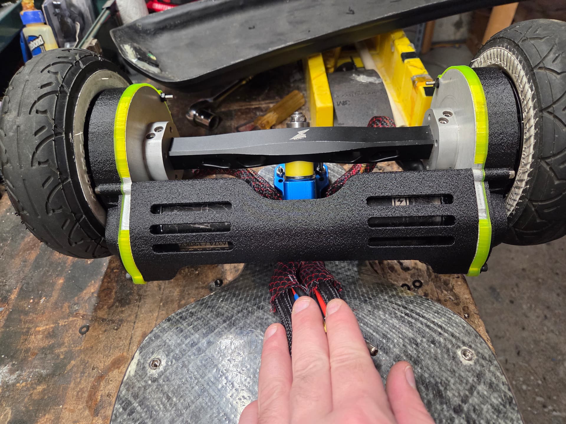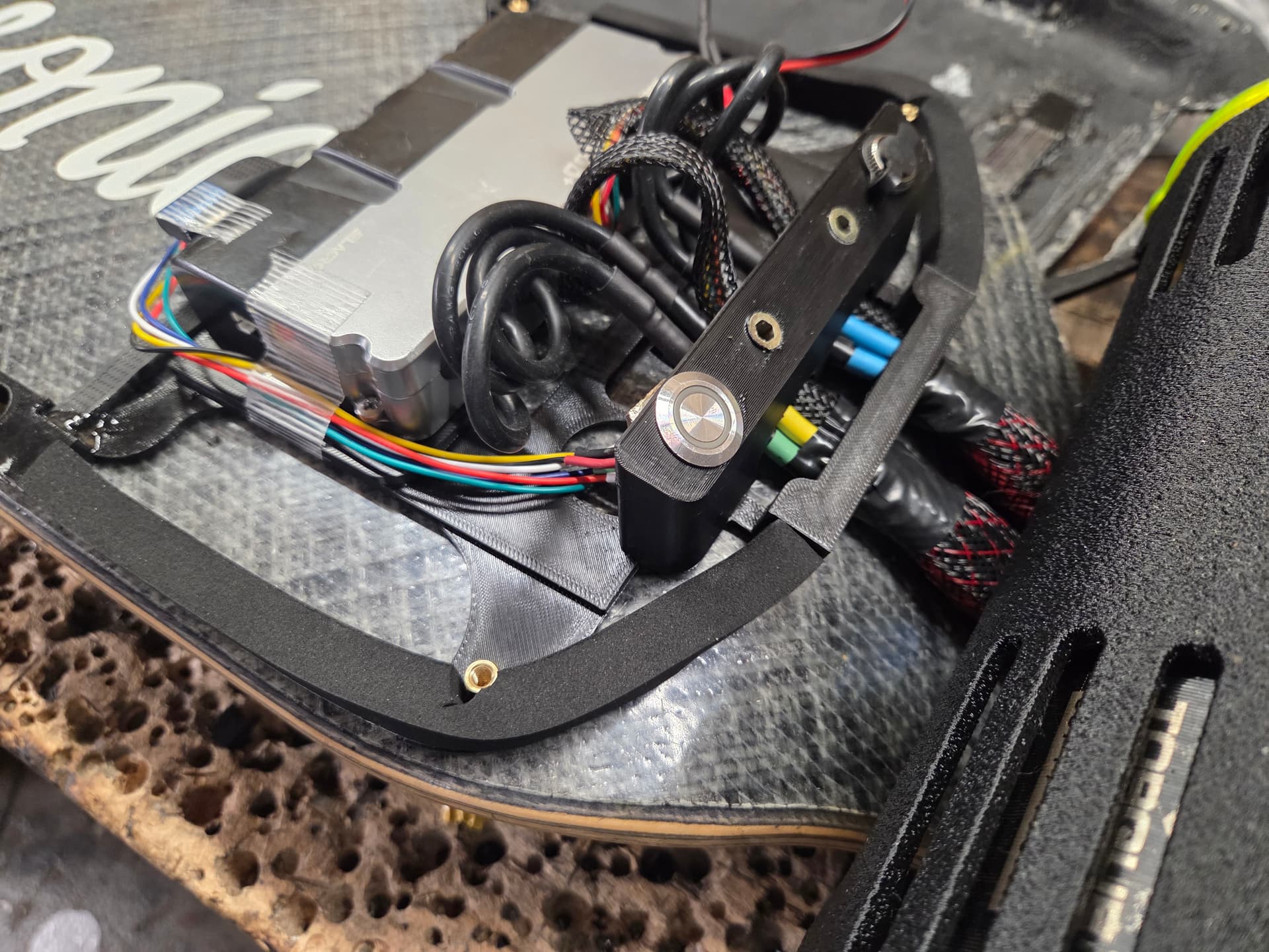 Im going to make some bridges down the underside of the deck where the remaining inserts are, acting as tie down points for the battery. This way the whole board can open up without having to worry about motor cables, a heavy battery coming loose while upside down etc.