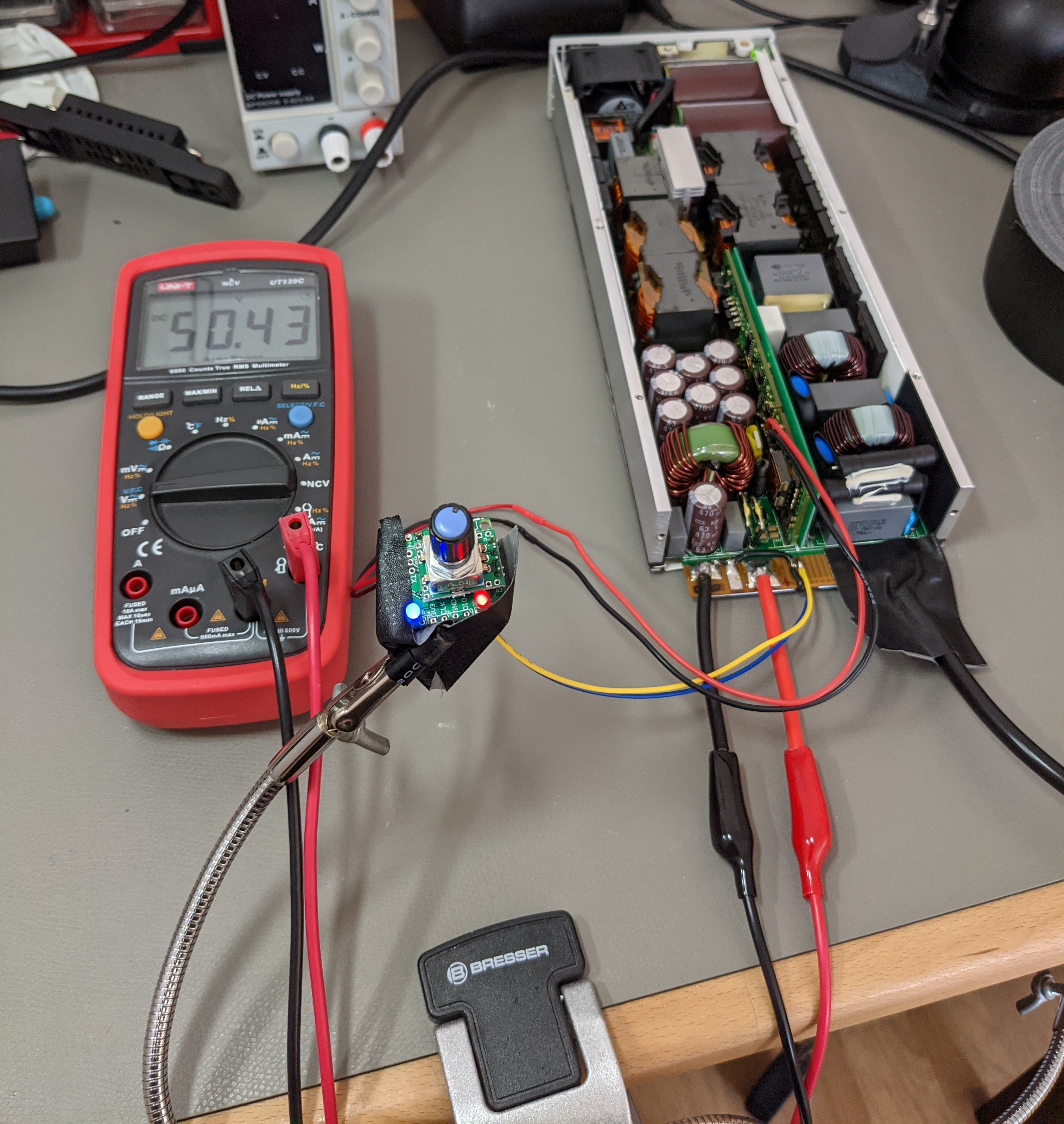 adjustable voltage range is about 39V to 58,5V and current adjustment works too.