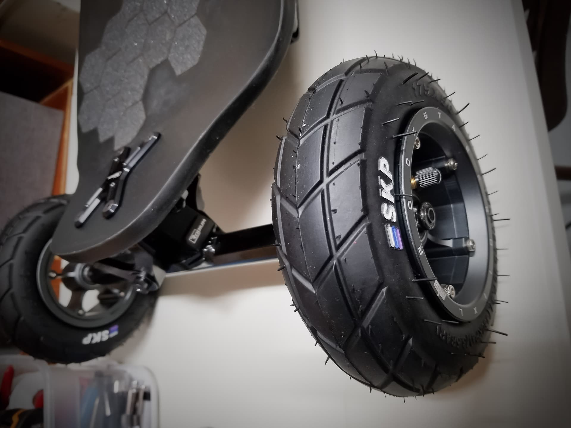 Pretty sure you’ll love the SKP tires. After having bad luck with a set of Kenda K909s I switched to 7” tires and tried some from Evolve. They were actually really good, but I couldn’t resist trying the SKPs. They are even better. Easy to balance, smooth rolling, and grippy. Looking forward to seeing yours stretched on those new hubs.