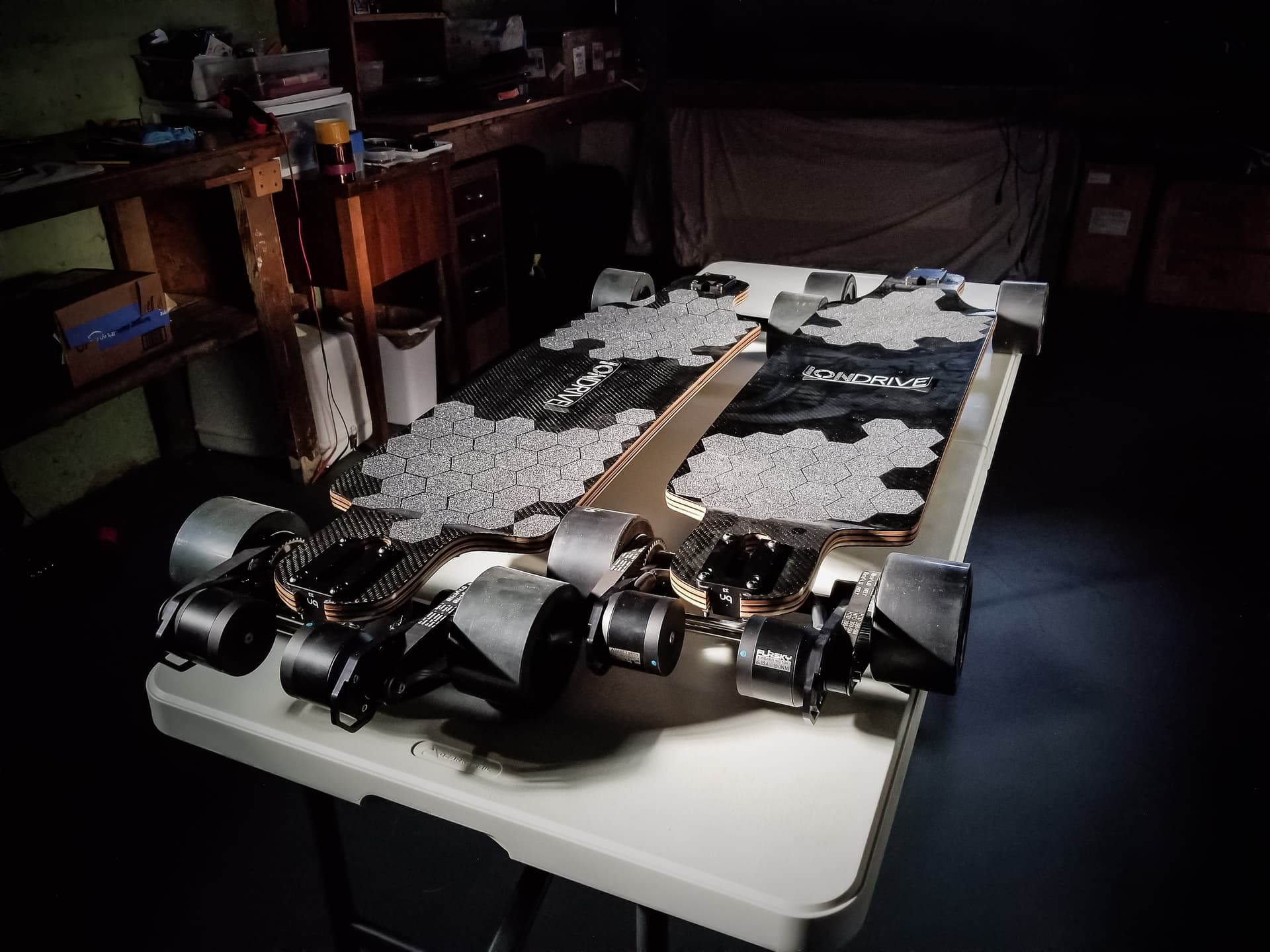 I now have two complete boards finished. One of them is getting ready to be packaged up for a trip south to @dskate for a video review some time this winter. There are four more rollers right behind these two. I’ll take some assembly photos of the last four when I make some more progress.