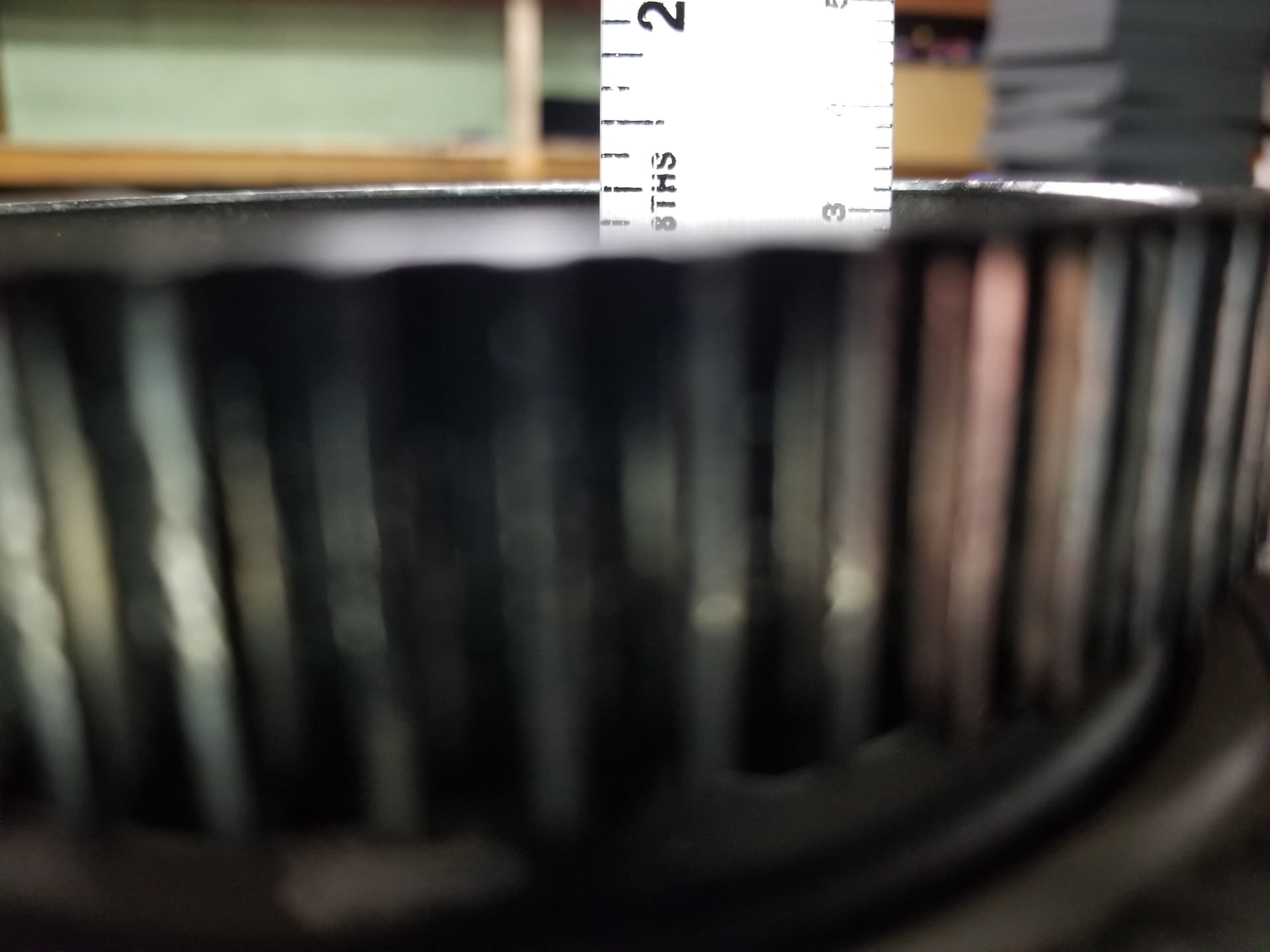 Let’s measure the offset just for the heck of it. I measured from the face of the bearing to the outside edge of the pulley, like this: