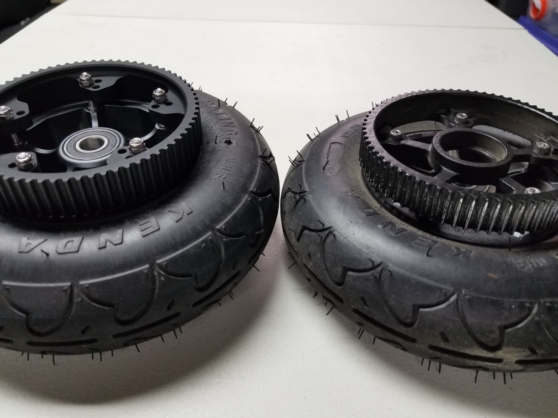 The next chapter in the Haero Bro build will be some MBS Rockstar Pro II XL aluminum hubs combined with some wheel pulleys with no stand-offs. The goal is to align the unsupported wheel pulley as close to the wheel bearings as possible, for less cantilever. More to come on that later.