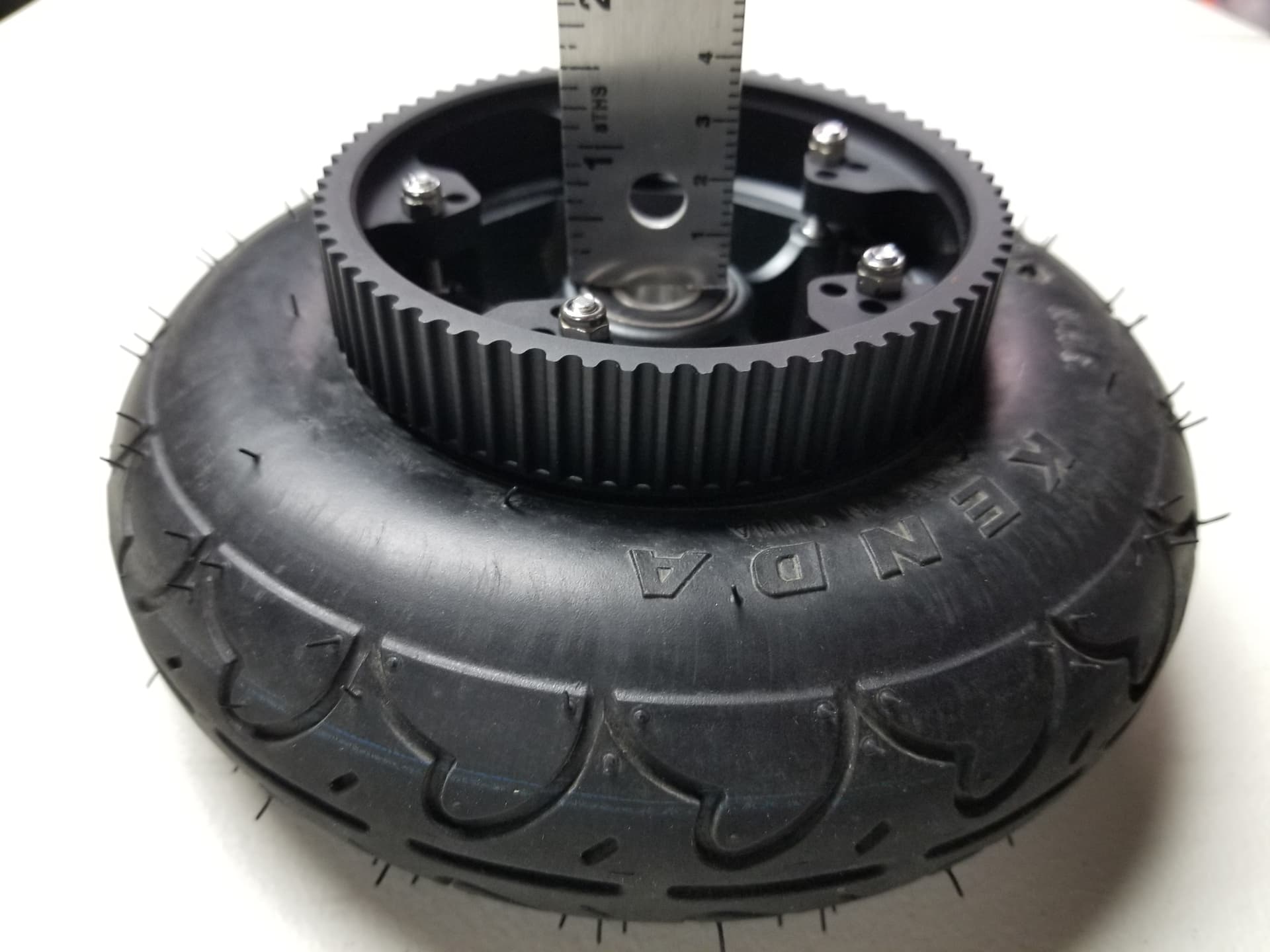 Then I mounted the Idea pulleys onto the Pro XL hubs. Notice the difference in offset between the edge of the pulley and the wheel bearing. I’m convinced that minimizing this offset will result in less stress on the bearing seat.