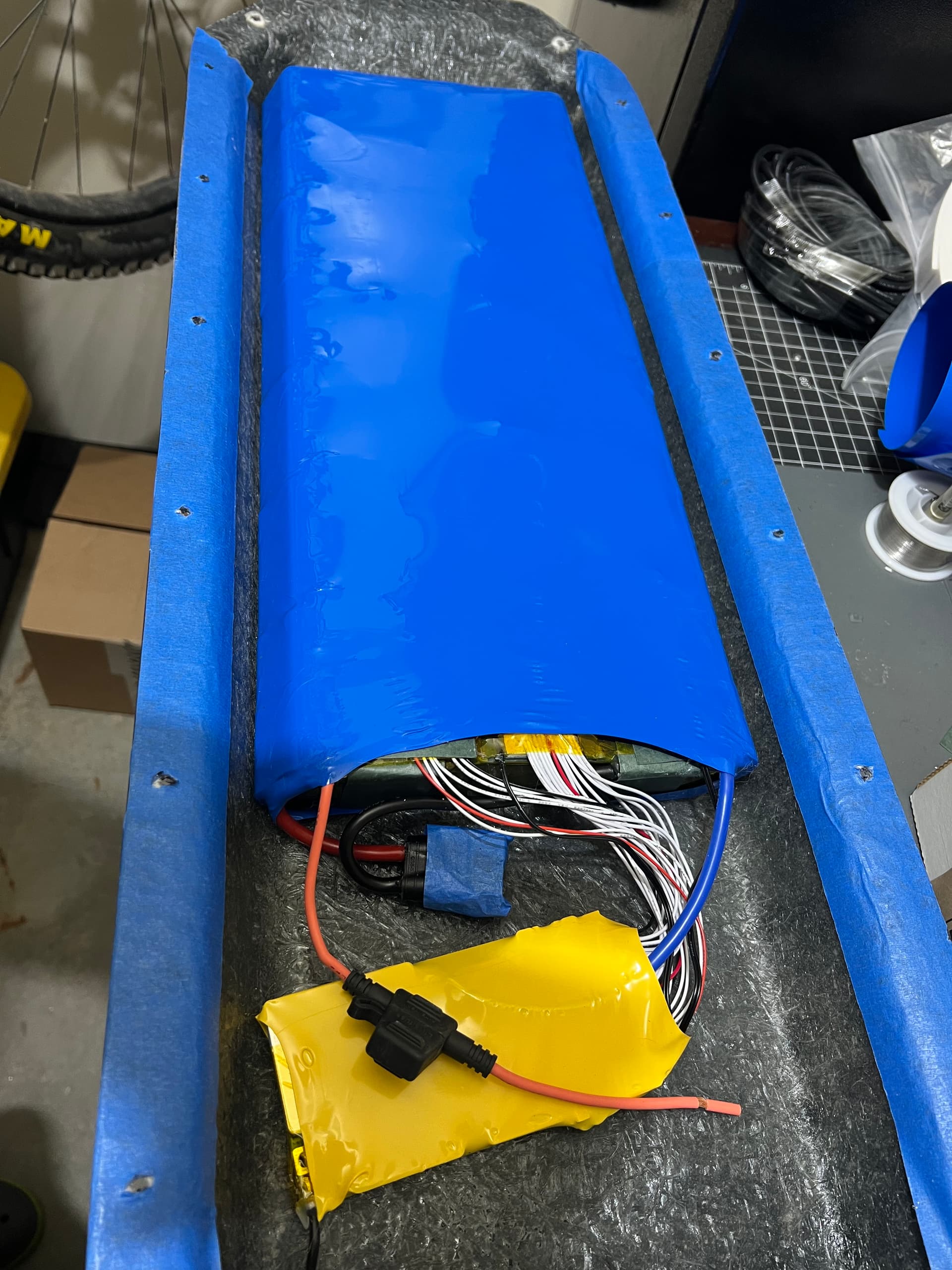 , man work has been super stressful so not a whole lotta progress. Welded up the battery a while ago but haven’t made the connections. Going LLT BMS as it’s familiar and I have room, but it hasn’t arrived yet anyways so, that’s been partially my excuse waiting on @Skyart. Once it arrives and is all done will give the battery a proper section above, but for now a couple pics: