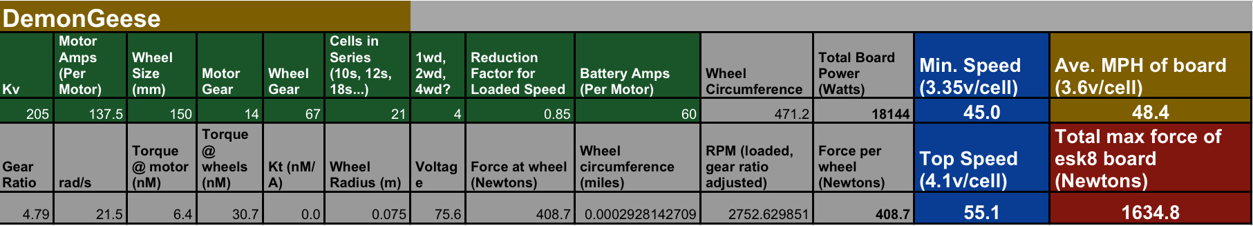 Now that my build is done I’m dropping some stats in here. This is calculated at max force but I don’t usually run amps this high. It’s simply too much torque and the front wheels spin out if they’re set this high. I think I’m running 100a rear and 69a front right now.