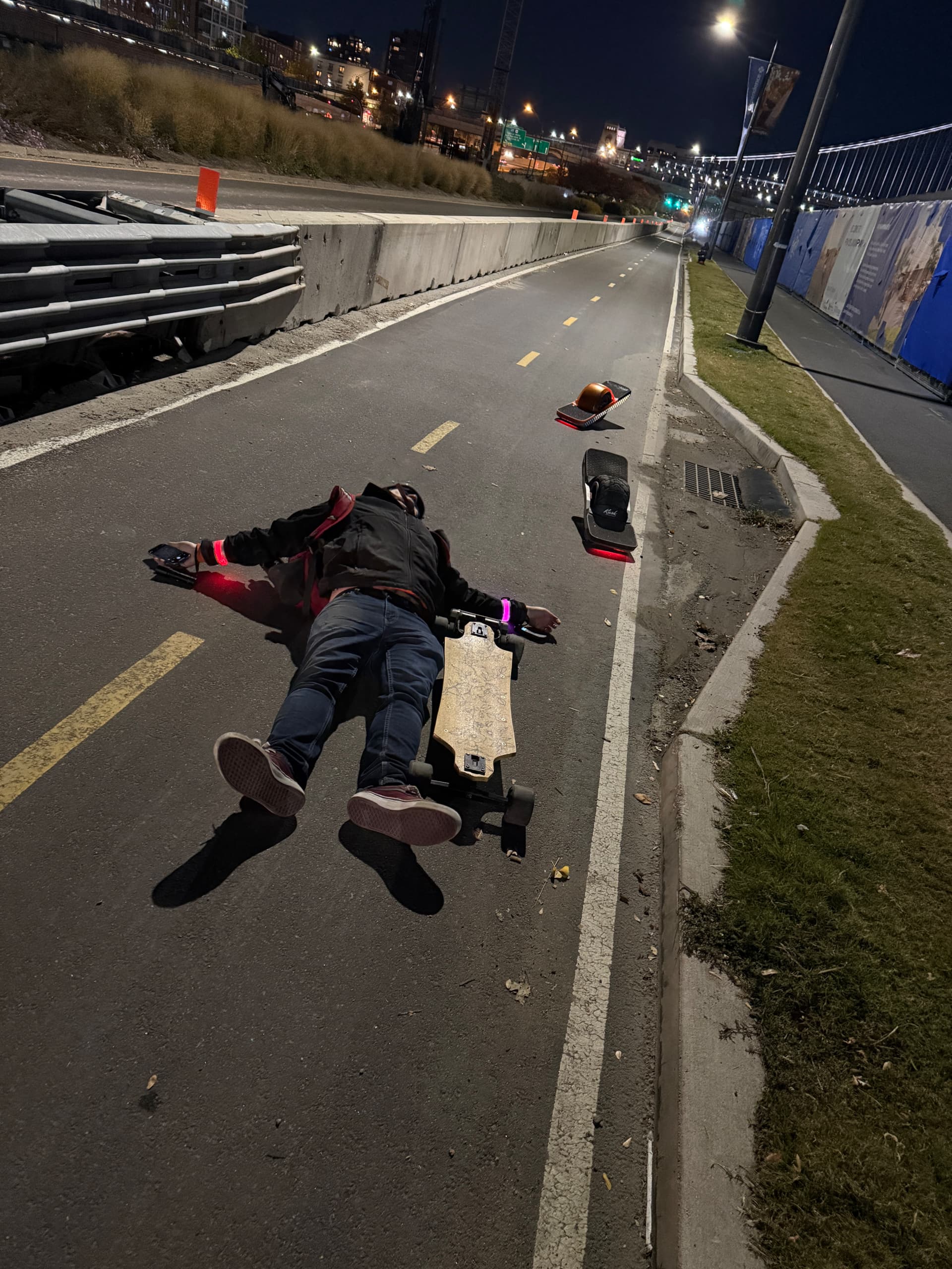 This weeks’ progress was continued to be stalled by my refusal to let the cold beat me. Lots of ride outs with the Philly Longboard guys, an impromptu ride out with some OneWheelers, and unfortunately, my first experience introducing my helmet to the asphalt.