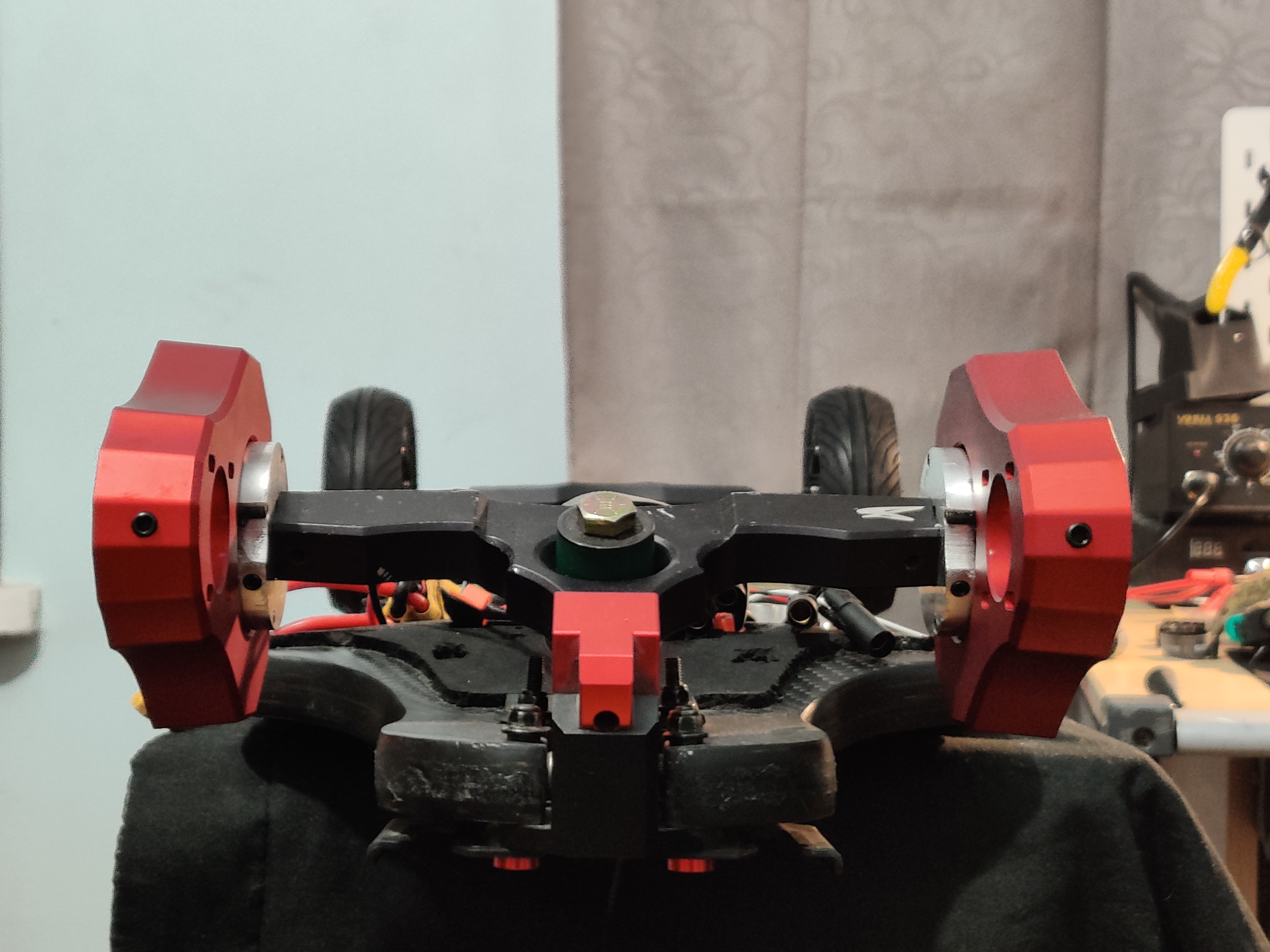 I filed the geardrive adapter a bit for better mesh and mounted them outwards, this allows me to run 73mm motors. As for the motors.