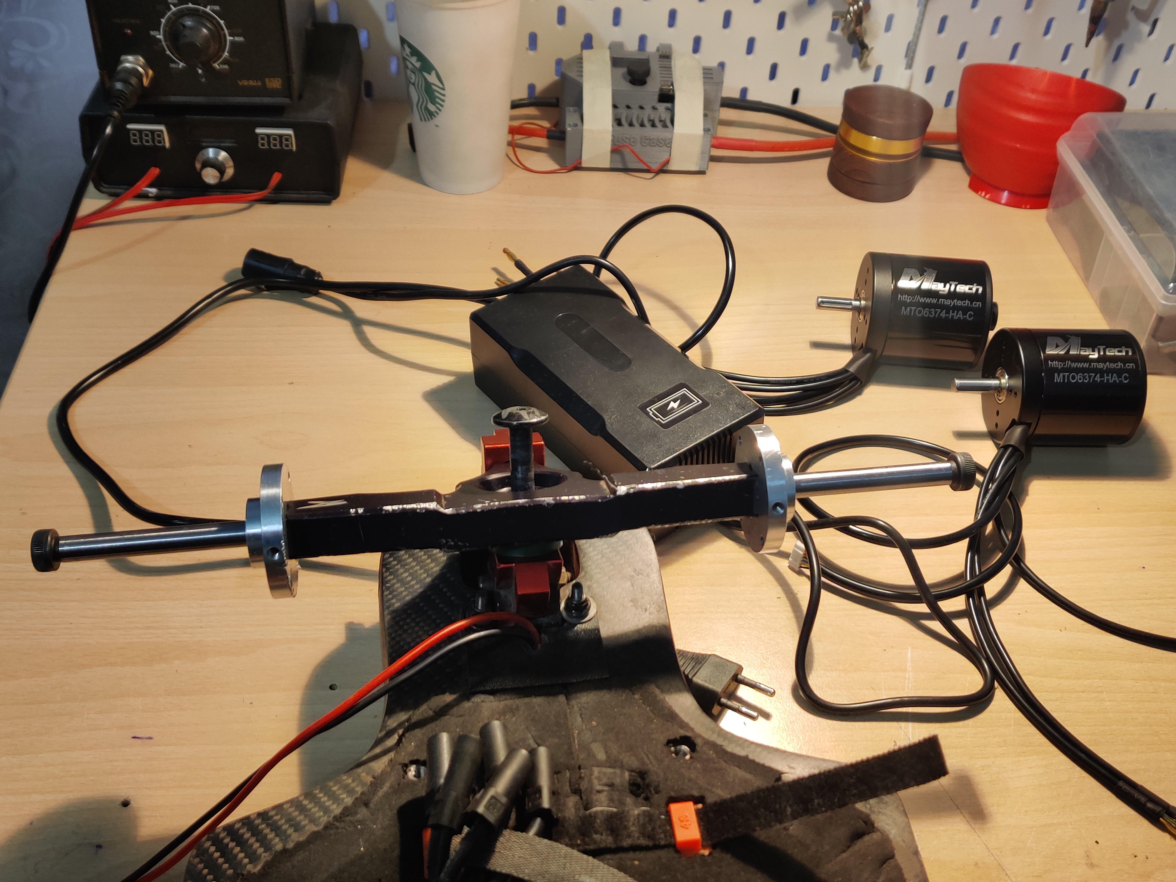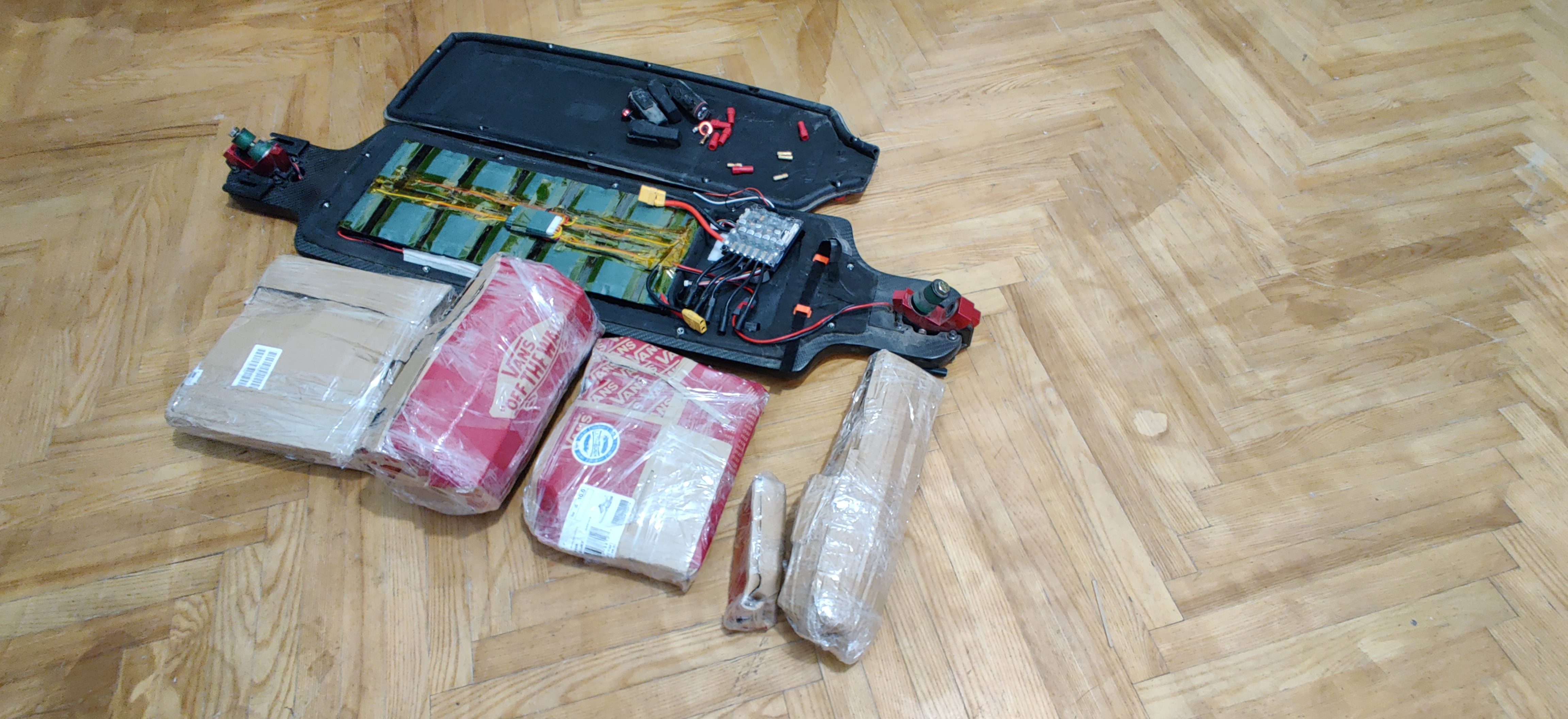 Since the vesc and the geardrive started to behave, I have started a small upgrade to the board, main one beeing a wider ride, 4cm wider to be exact. This will allow me to put bigger motors on. I really wanna try a softer, but wider ride. The gear drive adapter will need some moding, to allow motor to come closer. Also new shoes, as in TB tires, maybe 0.5cm + clearance will be just enought, also some bits and pieces like black bolts for rims, 4a charger and a new plug.
