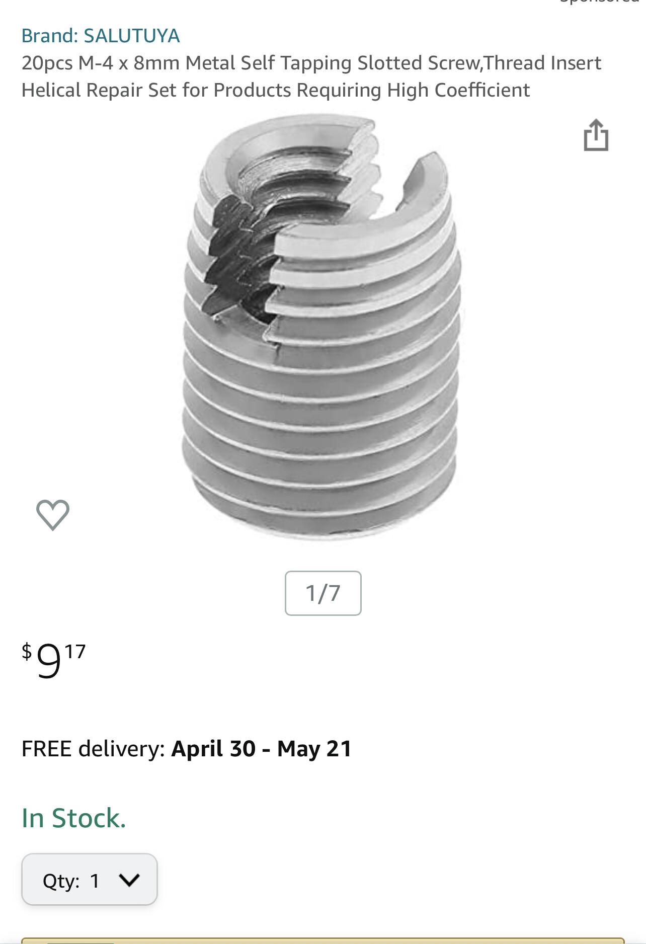20pcs M-4 x 8mm Metal Self Tapping Slotted Screw,Thread Insert Helical Repair Set for Products Requiring High Coefficient