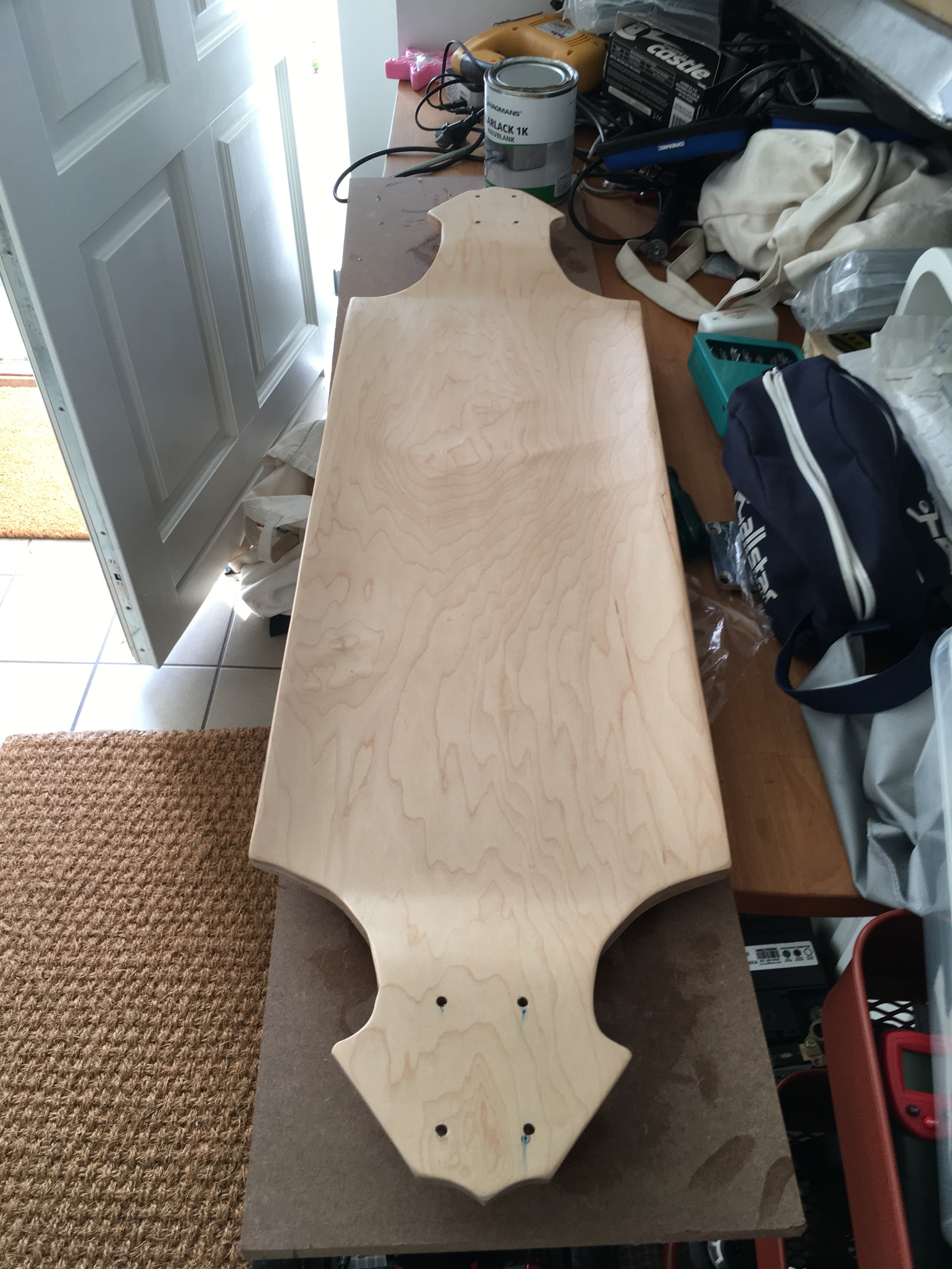 So I made a new deck with a wheelbase in-between the two. I cut the deck as wide as possible as I want to try a really wide deck. Will properly cut it very narrow later to try that and see what feels best.