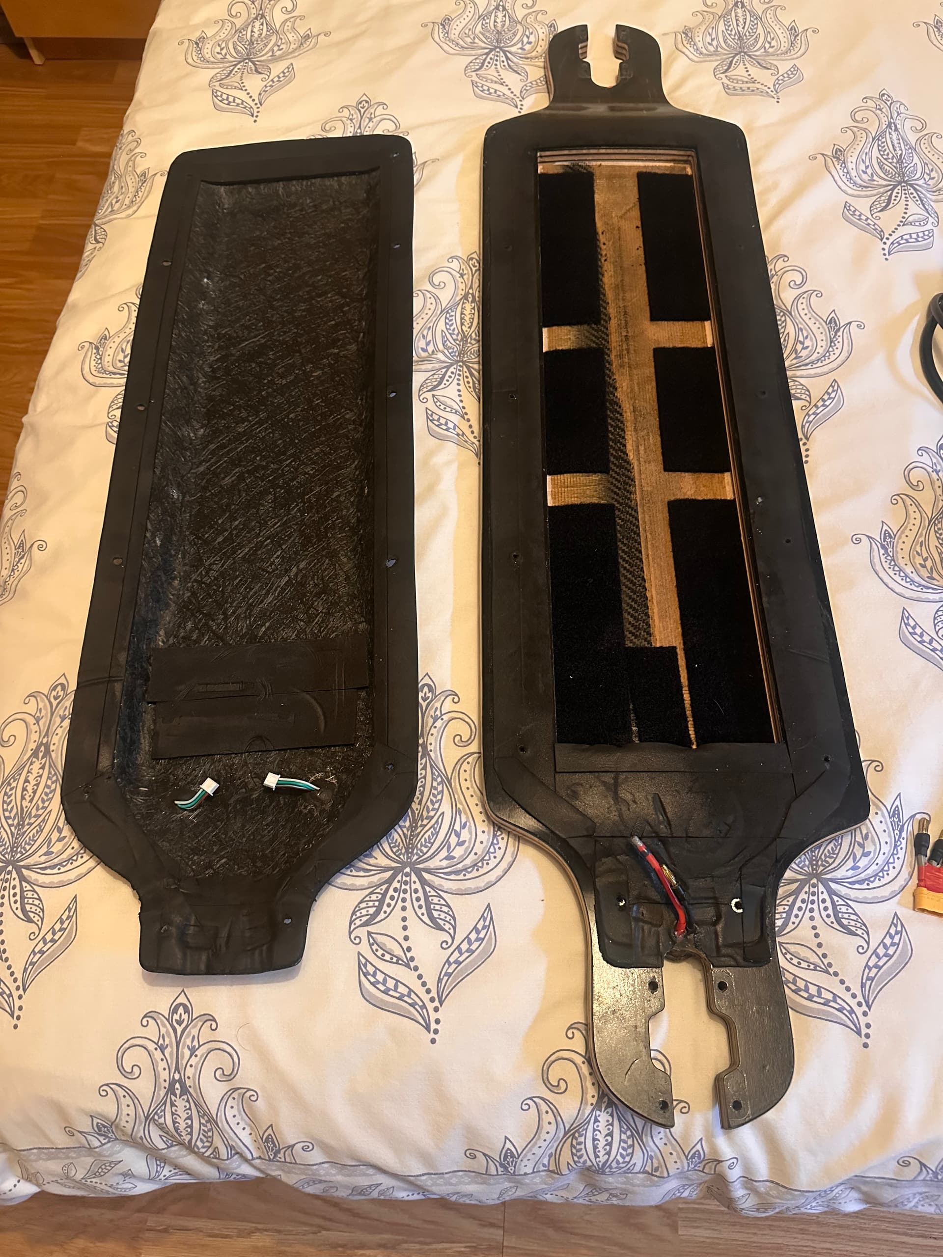 Both in good condition apart from a hole was routed for a charge port on the deck and the enclosure holes were eyeballed but can be filled . £60 for both