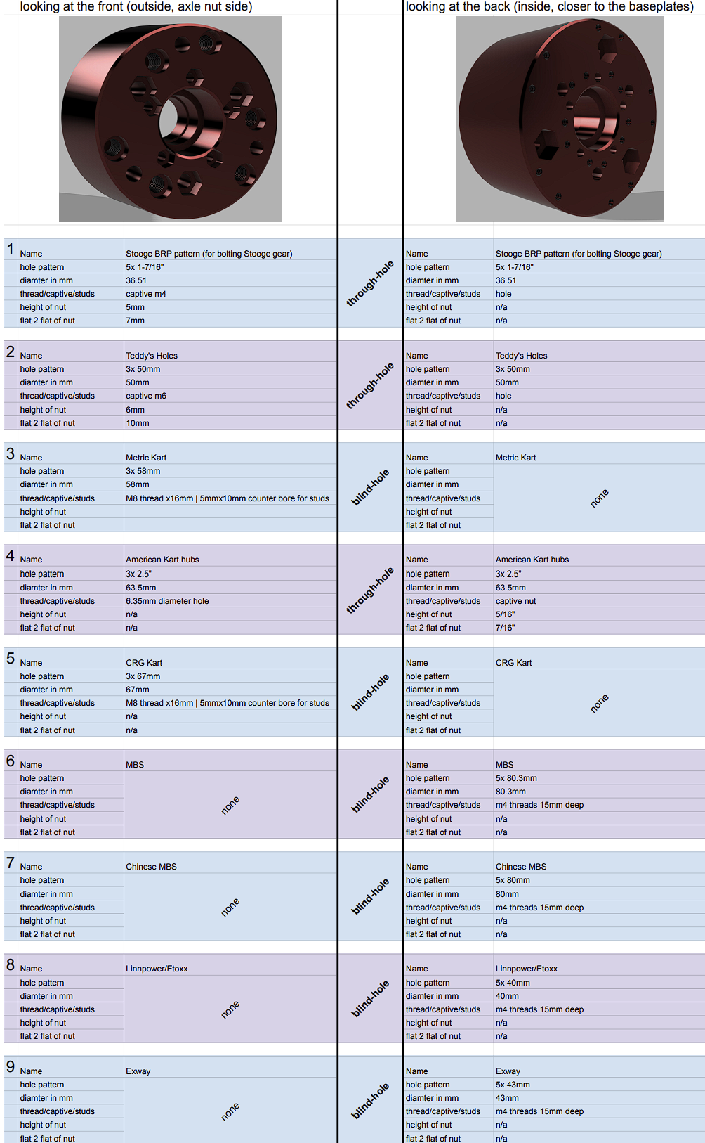 Go kart wheel bolt patterns: