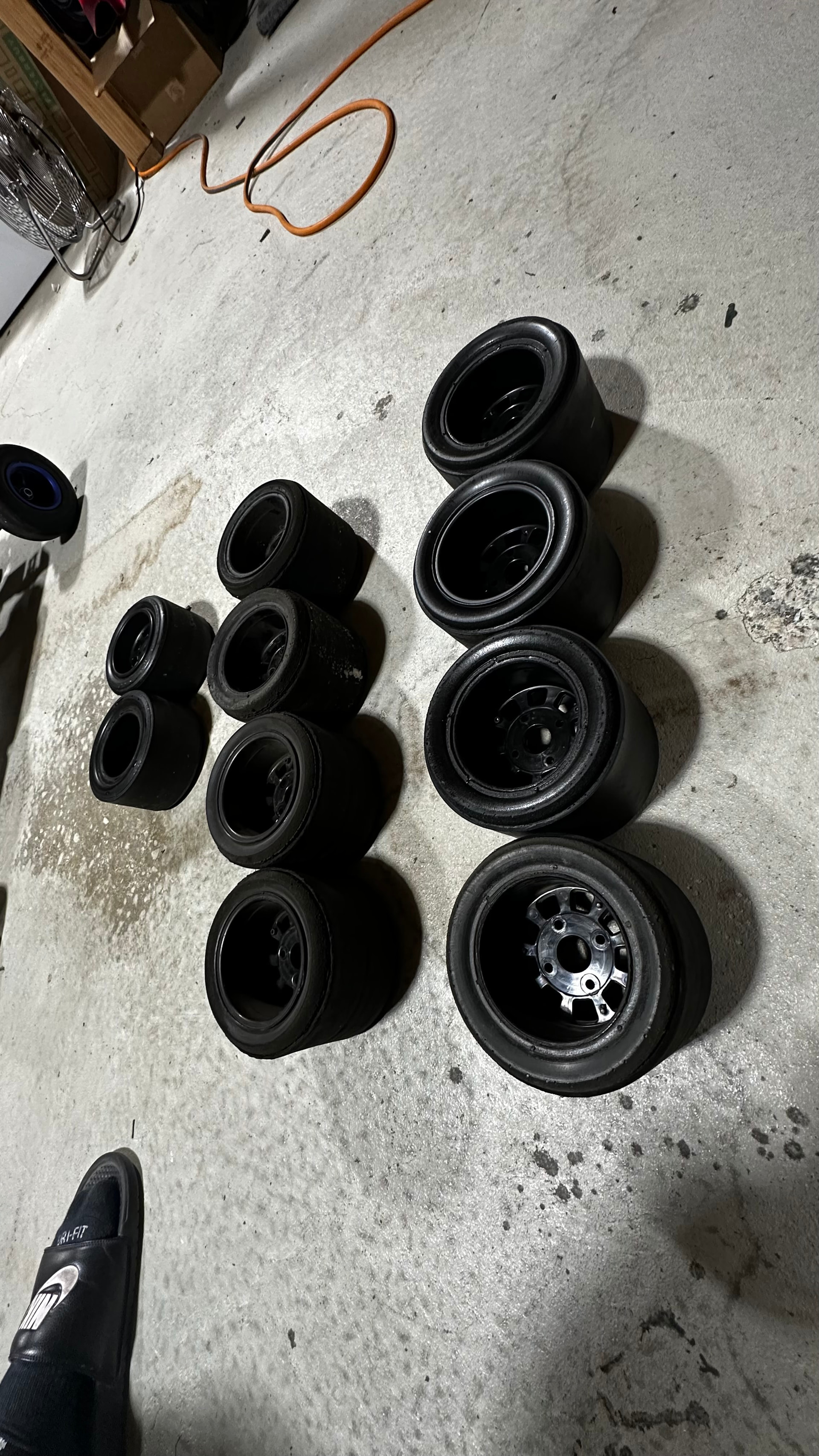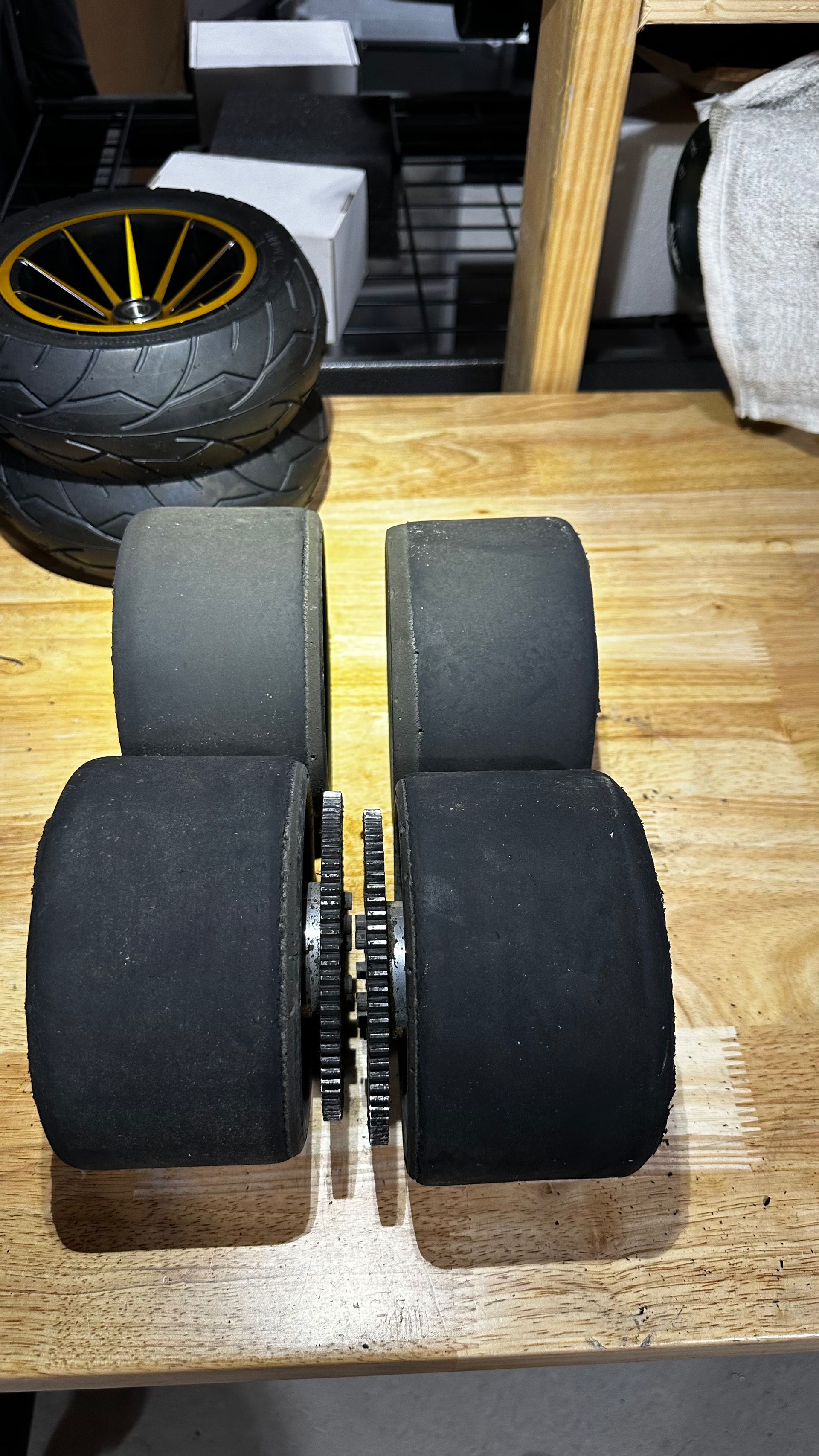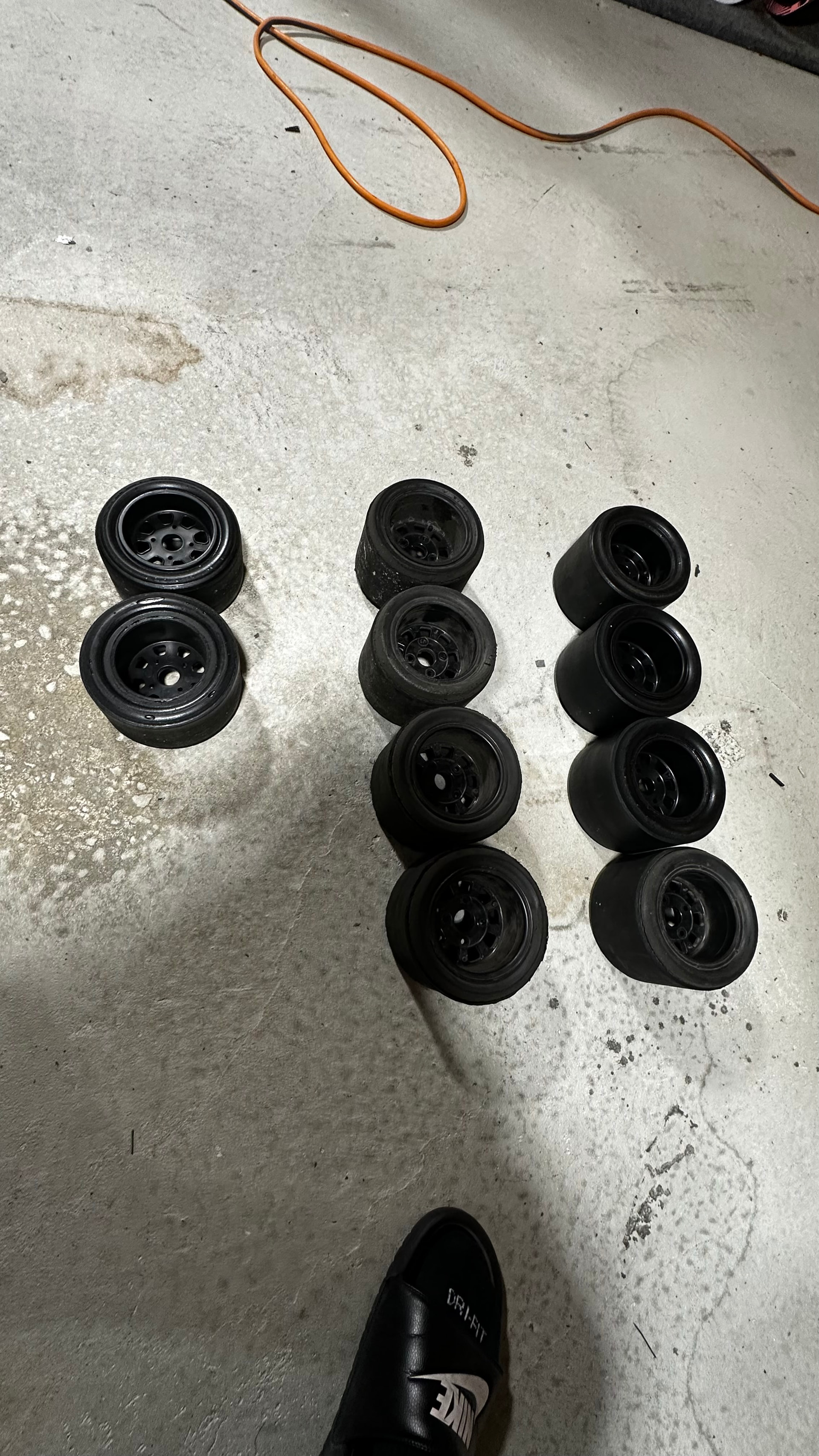 Description: 2 non drive brp hubs and 2 drive brp hubs with 45 a fronts all around. The front ones have little life left. Back ones have quite a bit. 78t gears attached to drive hubs.