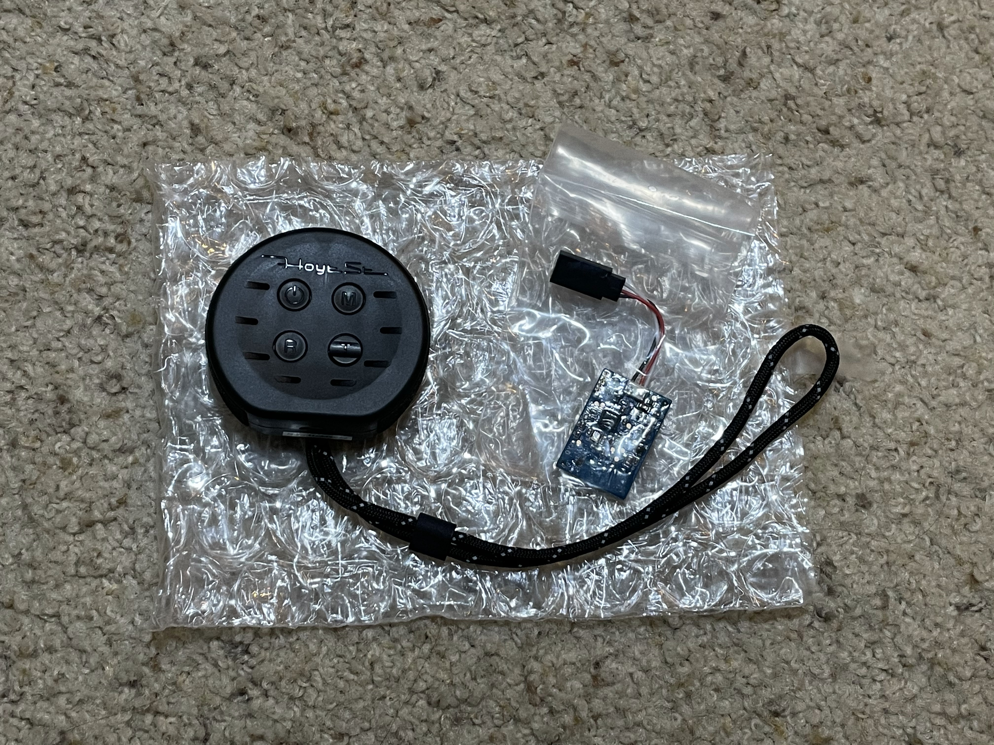 Description: Hoyt St Midnight Puck Remote Control; Injected nylon shell in place of standard bamboo. Comes with receiver.