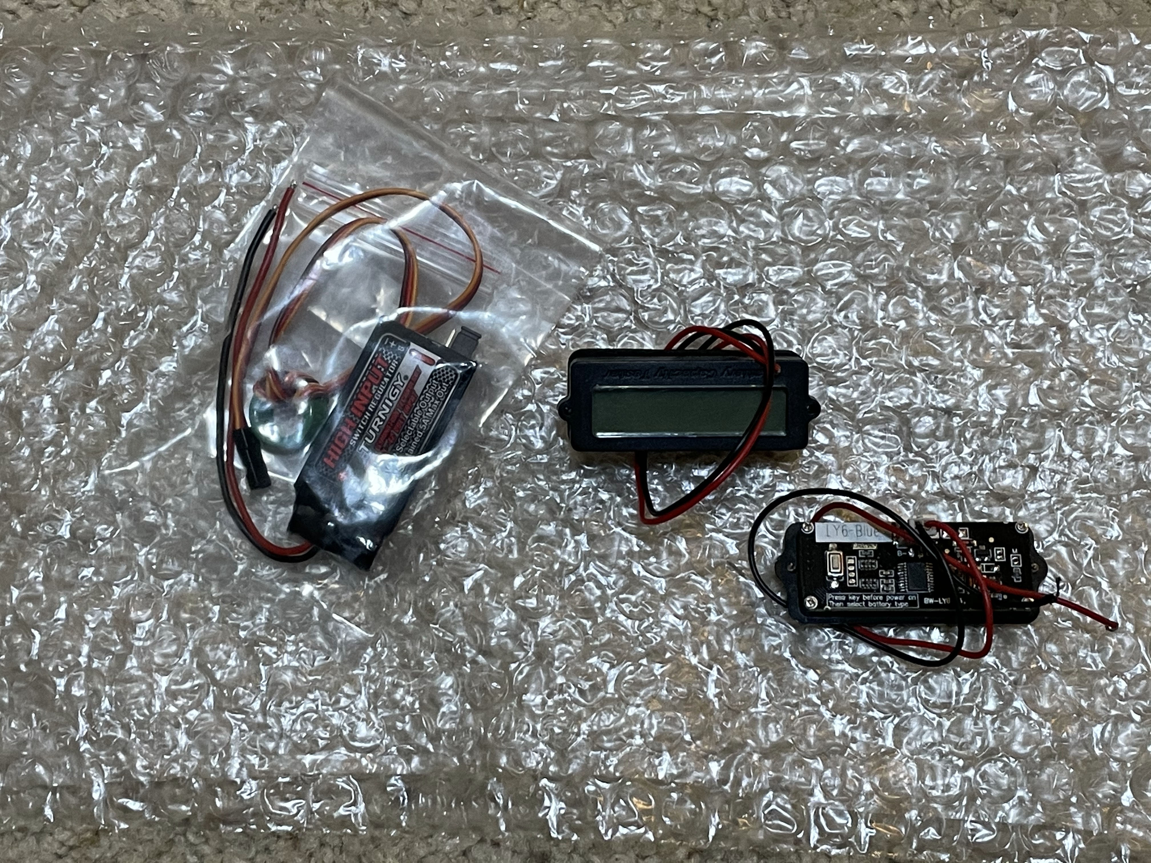 Description: Turnigy 10S 5V/6V 5A BECs and 12S voltage displays.