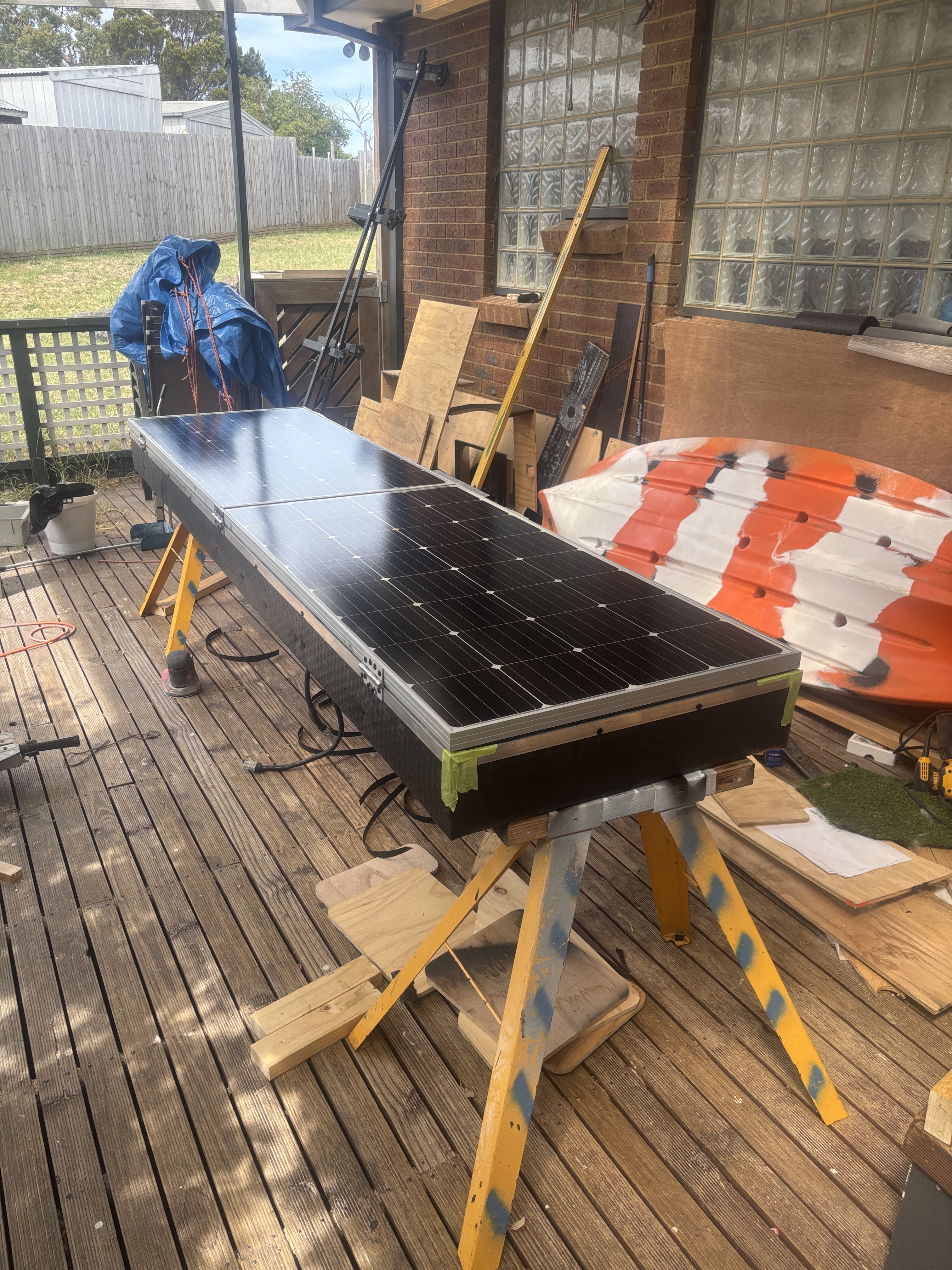 I do have a 100 watt flex panel I can plug into my MPPT. It fits behind windshield, but loses 50% through the glass.