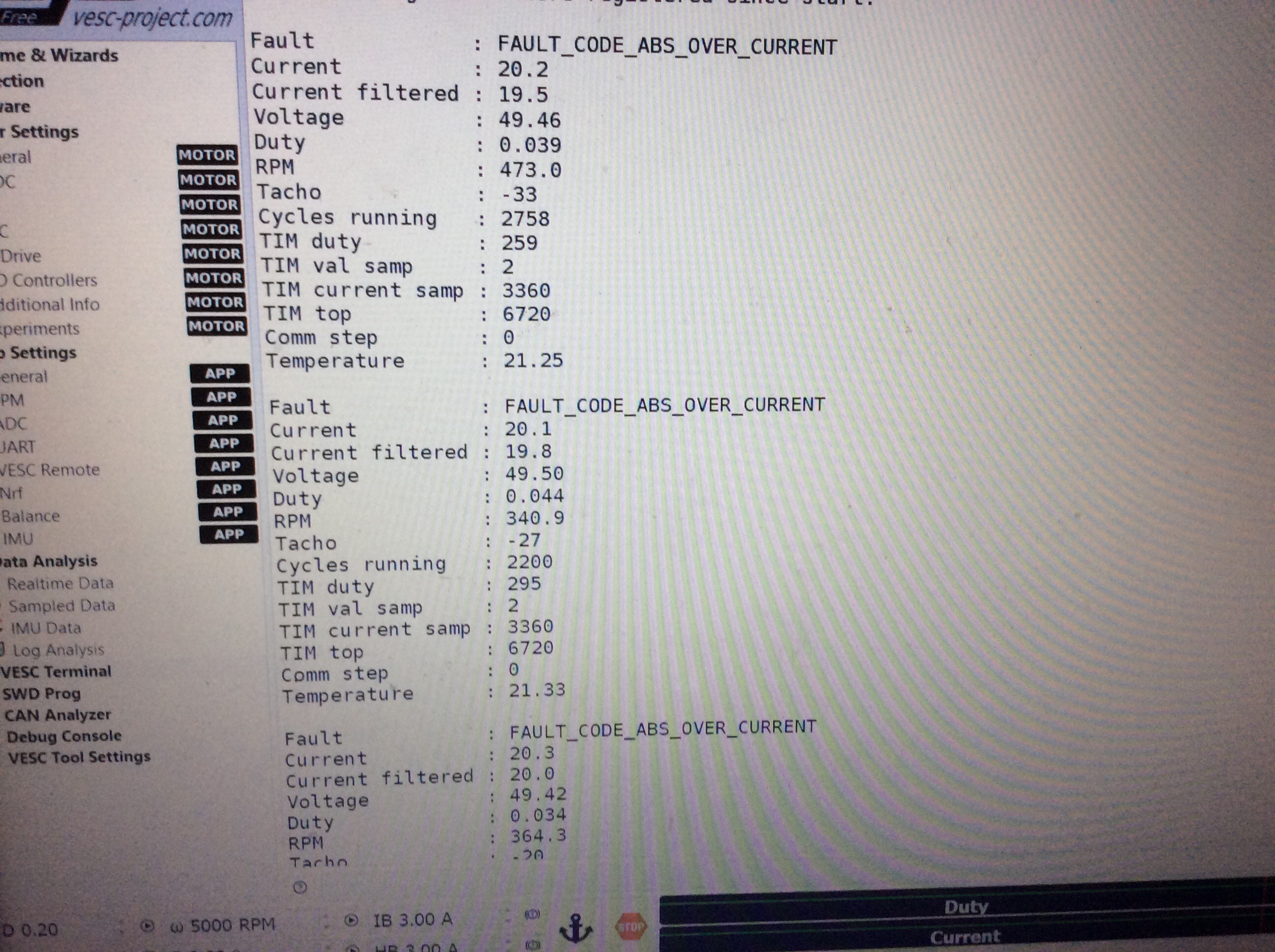 I just reset my vesc settings Andy wanted to change some and now when I try to throttle I get an overcurrent fault