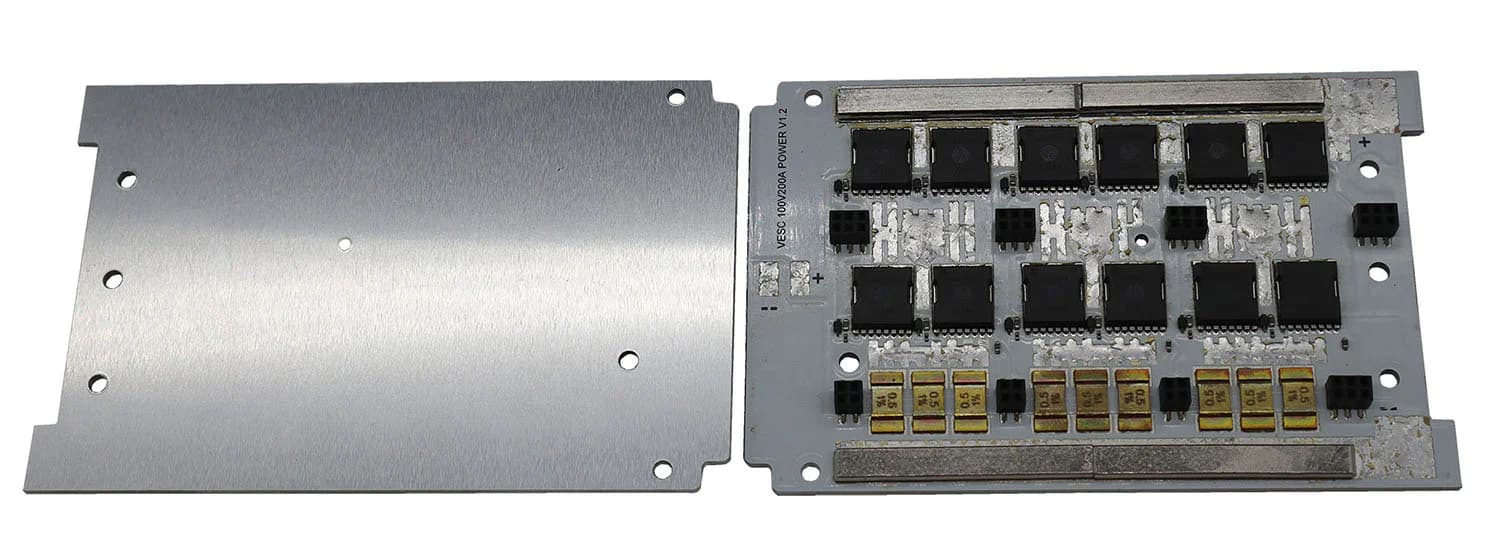 For those interested I think thats what nearly every comparable VESC does, and they look like IPT015N10N5 from the video. A little more resistance but less gate charge than HYG015N10NS1TA (used in D100S and flipsky iirc) and very similar specs to JMSH1001ATL (Spintend) granted I am very much not an expert.