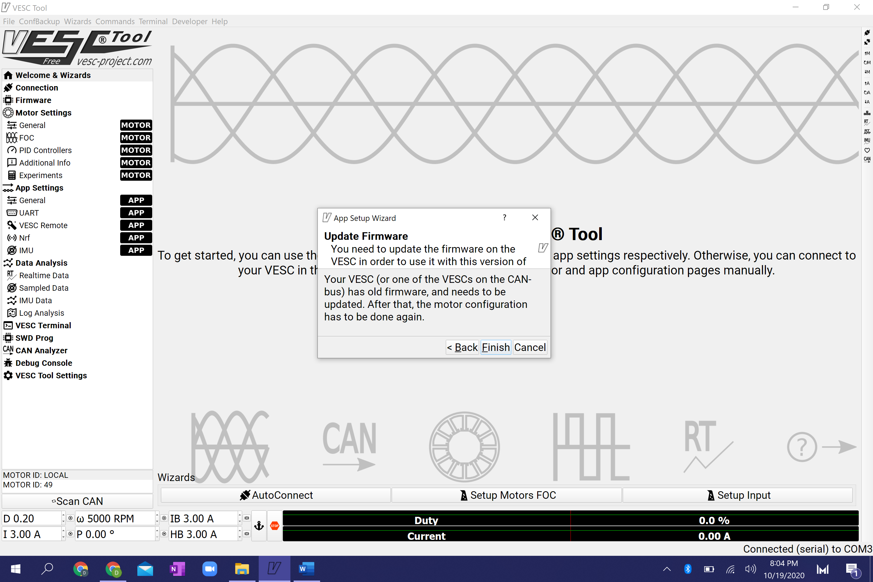 This is the error message I get when trying to set up my flipsky VX1 in the controller wizard. I’m totaly stuck because when I try and set the remote up by connecting to just one vesc, It will not read out my ppm mapping. Please help im just getting back into DIY ESK8 after a year and i really want to get riding again.