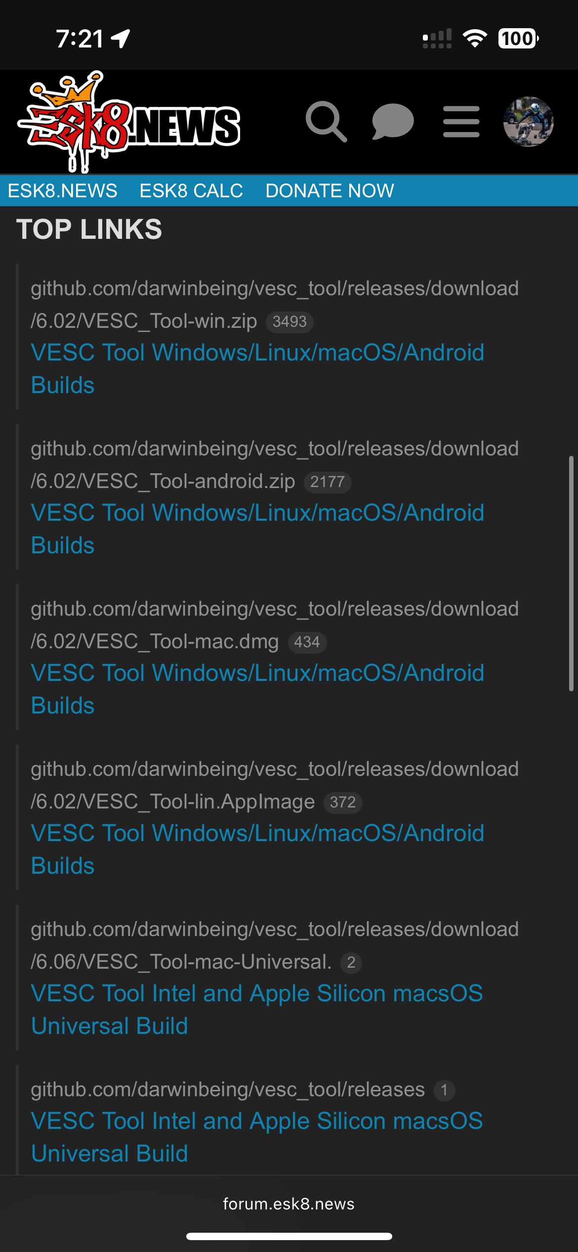this profile has 5000 clicks on their links because, until 15 minutes ago when Marcel unlisted their 2 year old thread, it was the 5th result on Google for “VESC Tool download” and the only result with an actual download button.