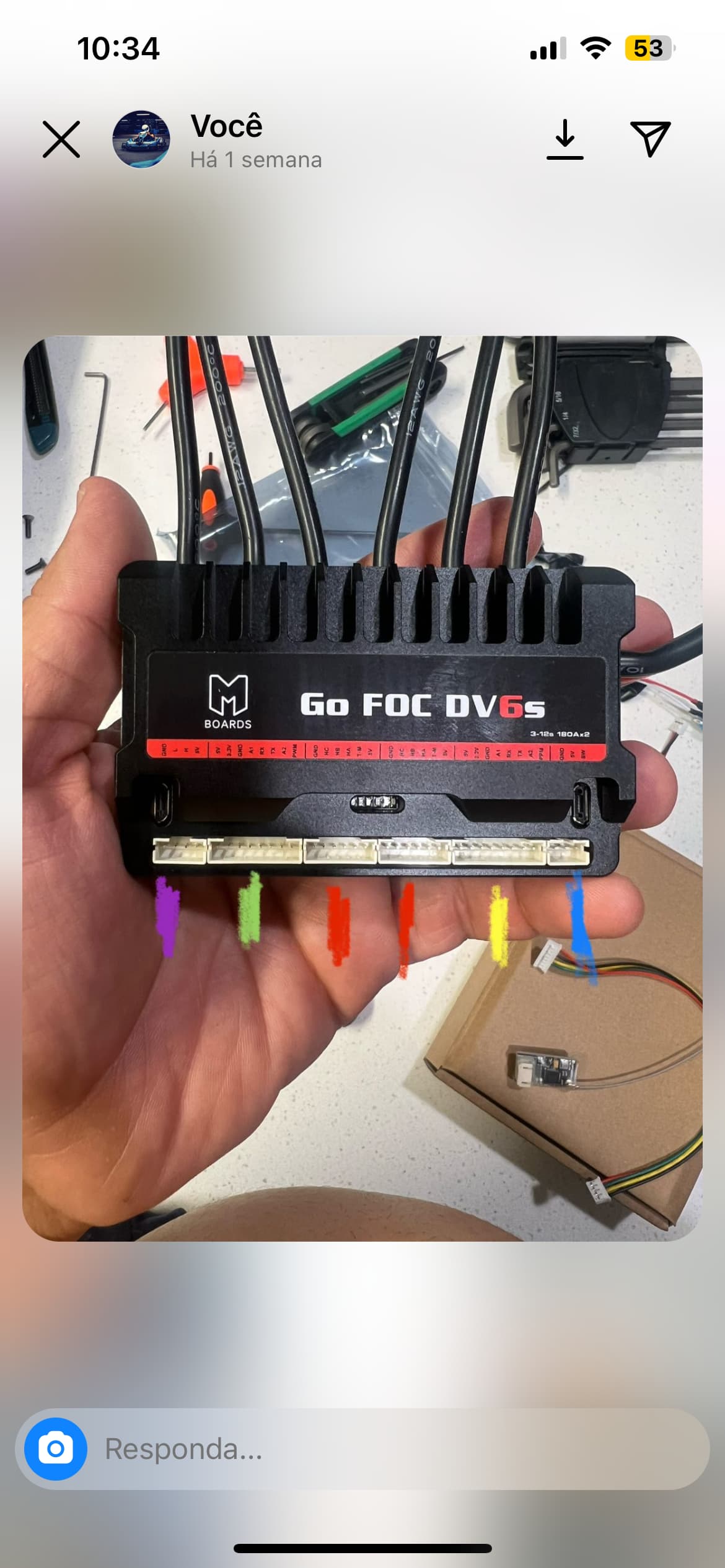 I just bought the Megan, but my DV6s does not have the ports almost all open use, blue power button, yellow the receiver of the remote vx4, the two red the motor sensor, the green the bluetooth receiver of the esc, only the purple one left which is a 4-pin input,