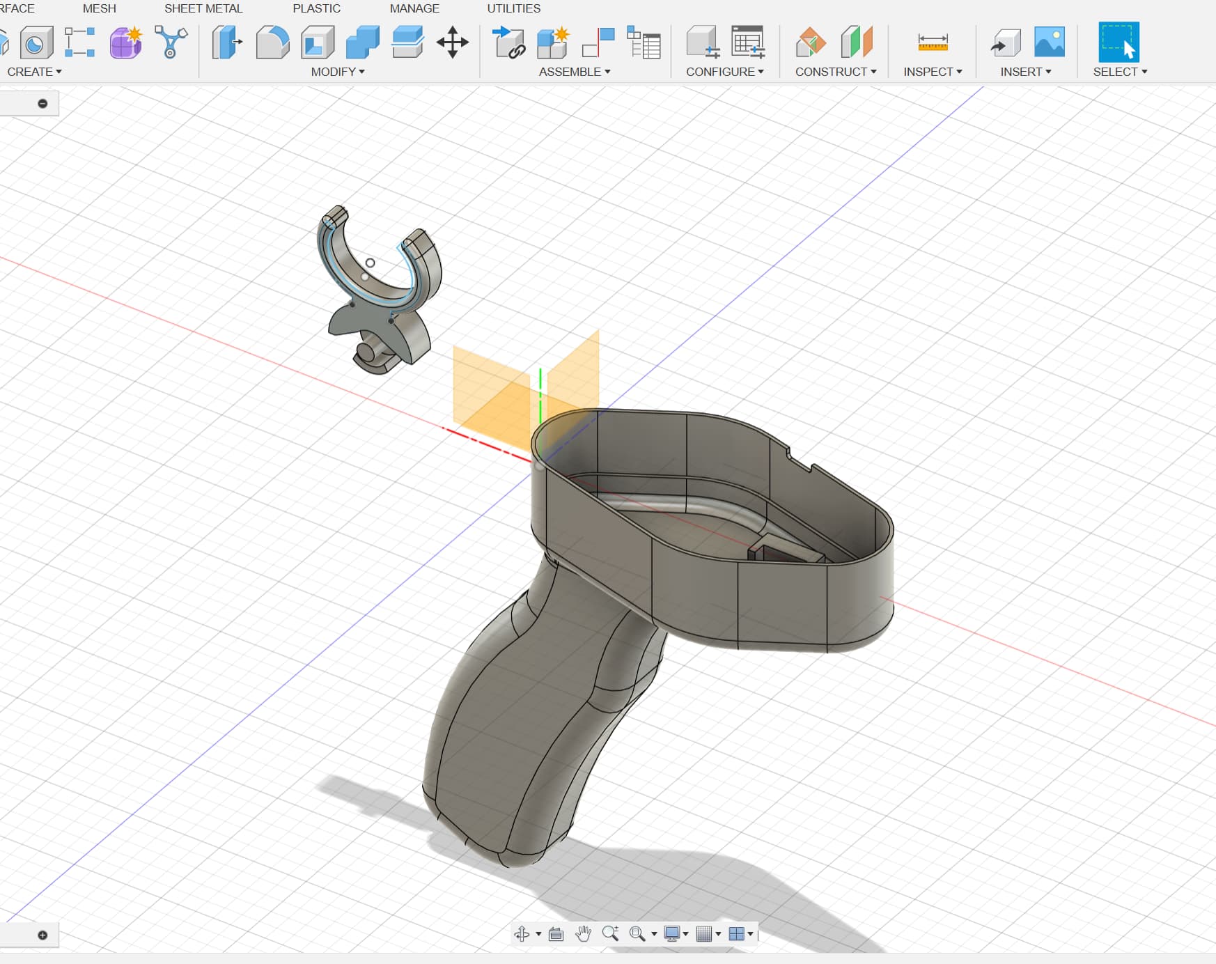I’m using half of the existing remote design because the buttons and screen–protector are integrated and it really simplifies the project. For now, the top of the remote has to be hot-glued into position because the clips that secure it are a pain in the ass to replicate and place.