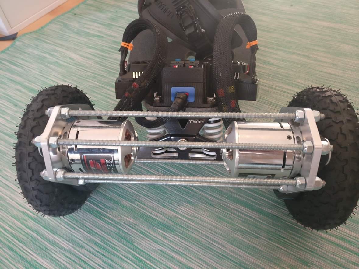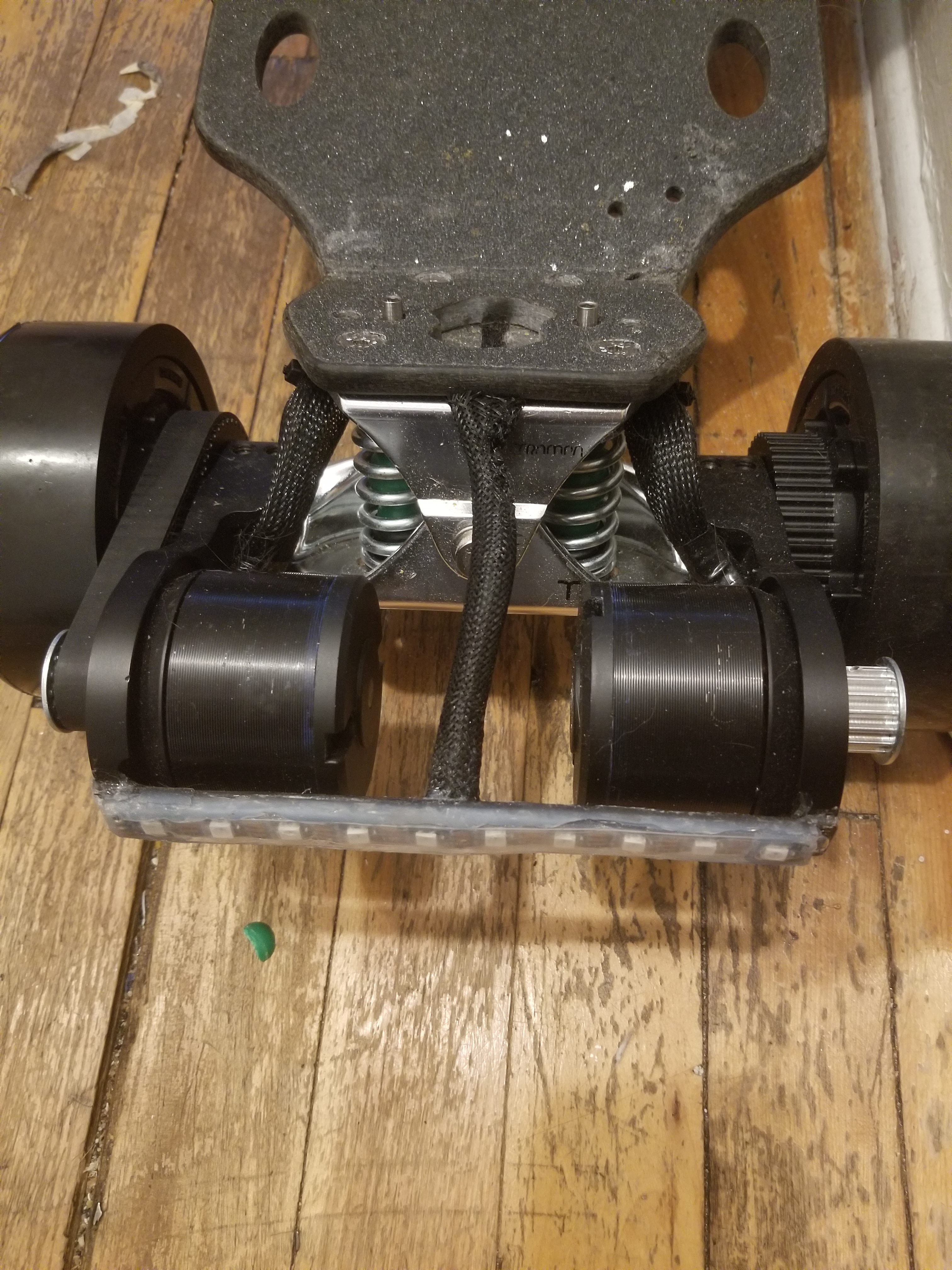 I had a set of mounts for the solid trampa trucks and a truck for them, so I swapped hangers and put it on in the “street” configuration (backwards) and it looks like it’ll work for now hahaha