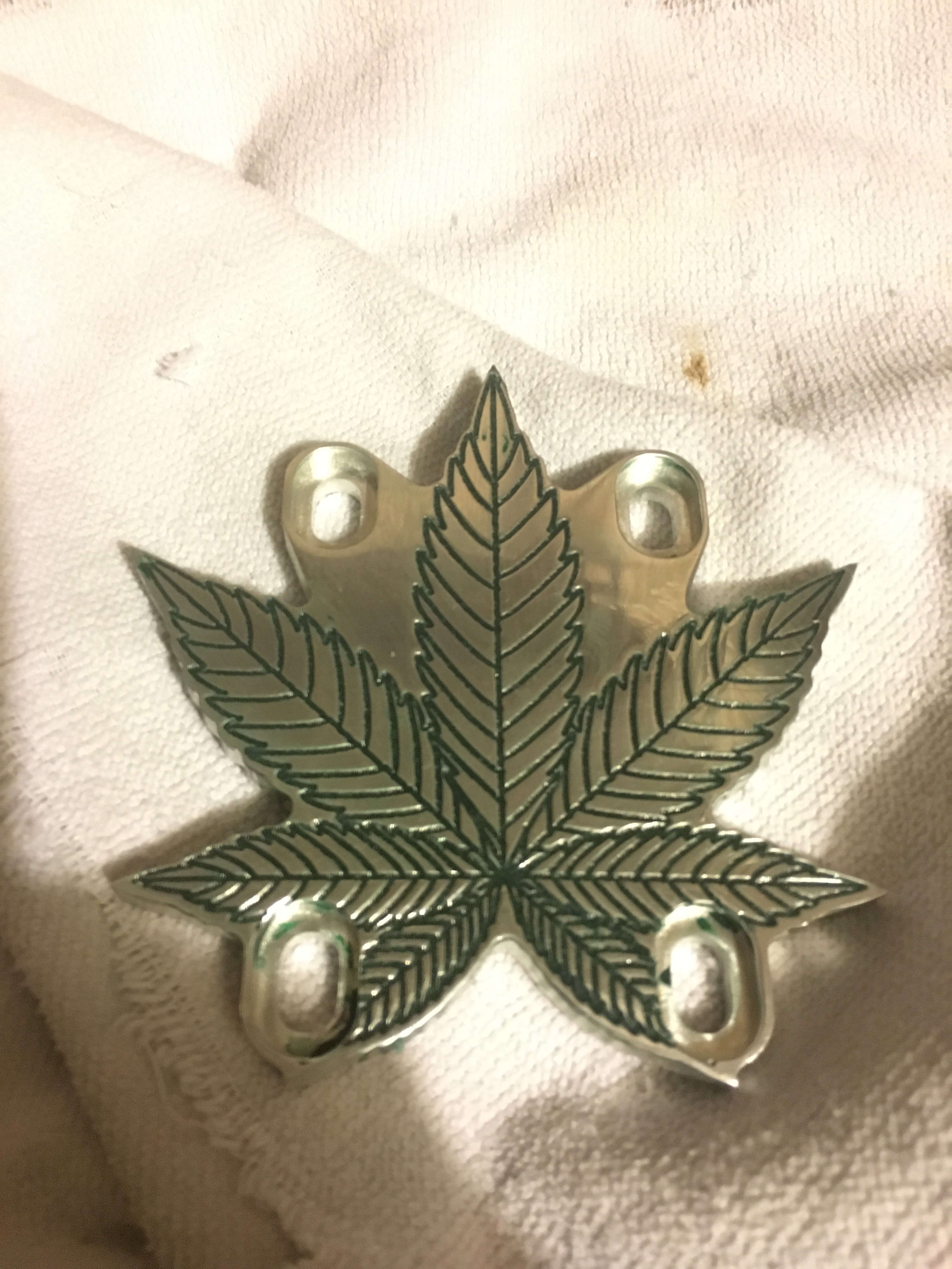 How I did it was I used nail polish or model paint and painted over it so it would get in the engraved parts and then used acetone to get it off the other parts and left the colored engraving.