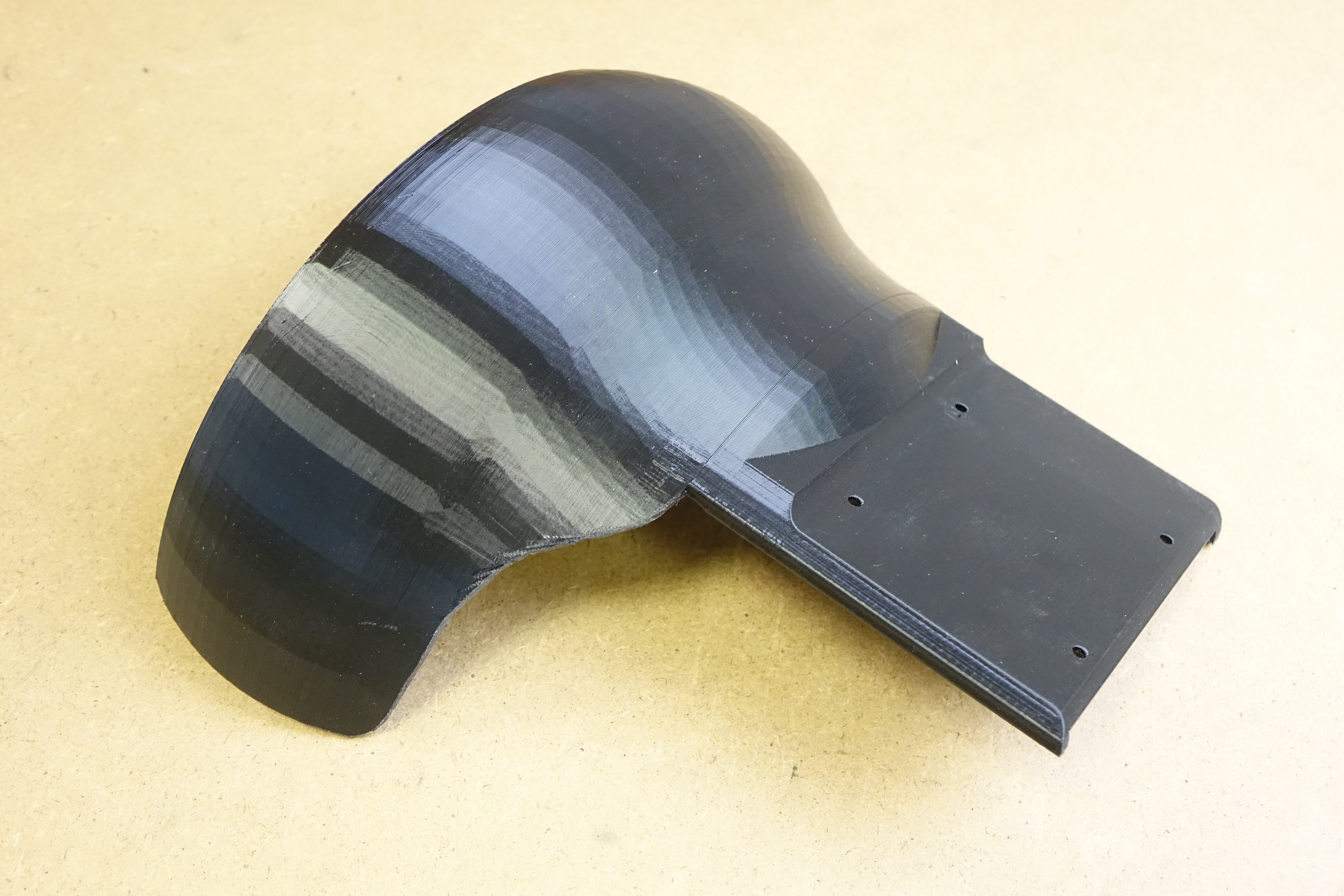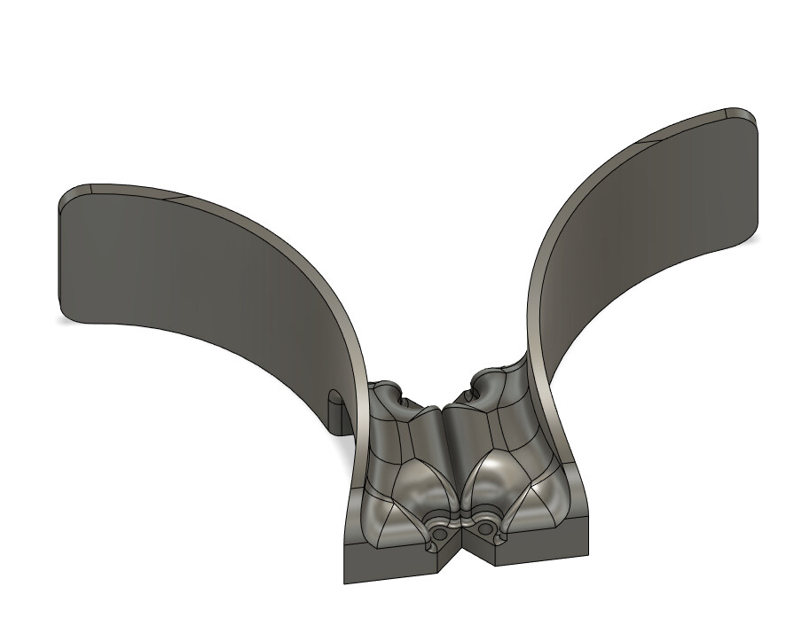 I have 220mm diameter at the edge, opening up to 240mm. This is for 165mm tires. There’s plenty of clearance. I could have probably gotten away with reducing the diameters by ~20mm. I may still do it since I’ll be reprinting it anyway. I want to take a little off the rear part and model the cutout that I had to do manually so that the left and right part are nice and symmetric.