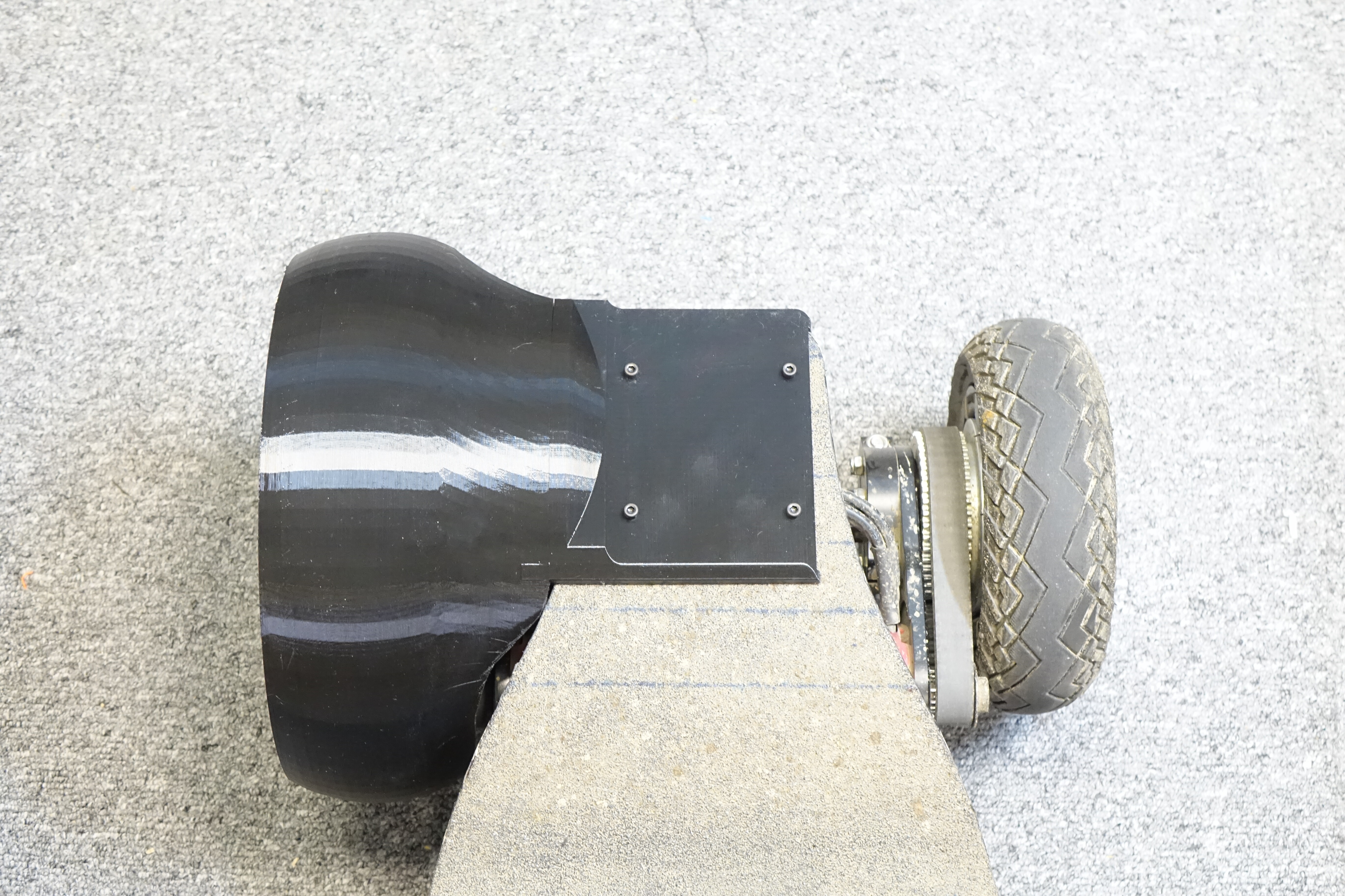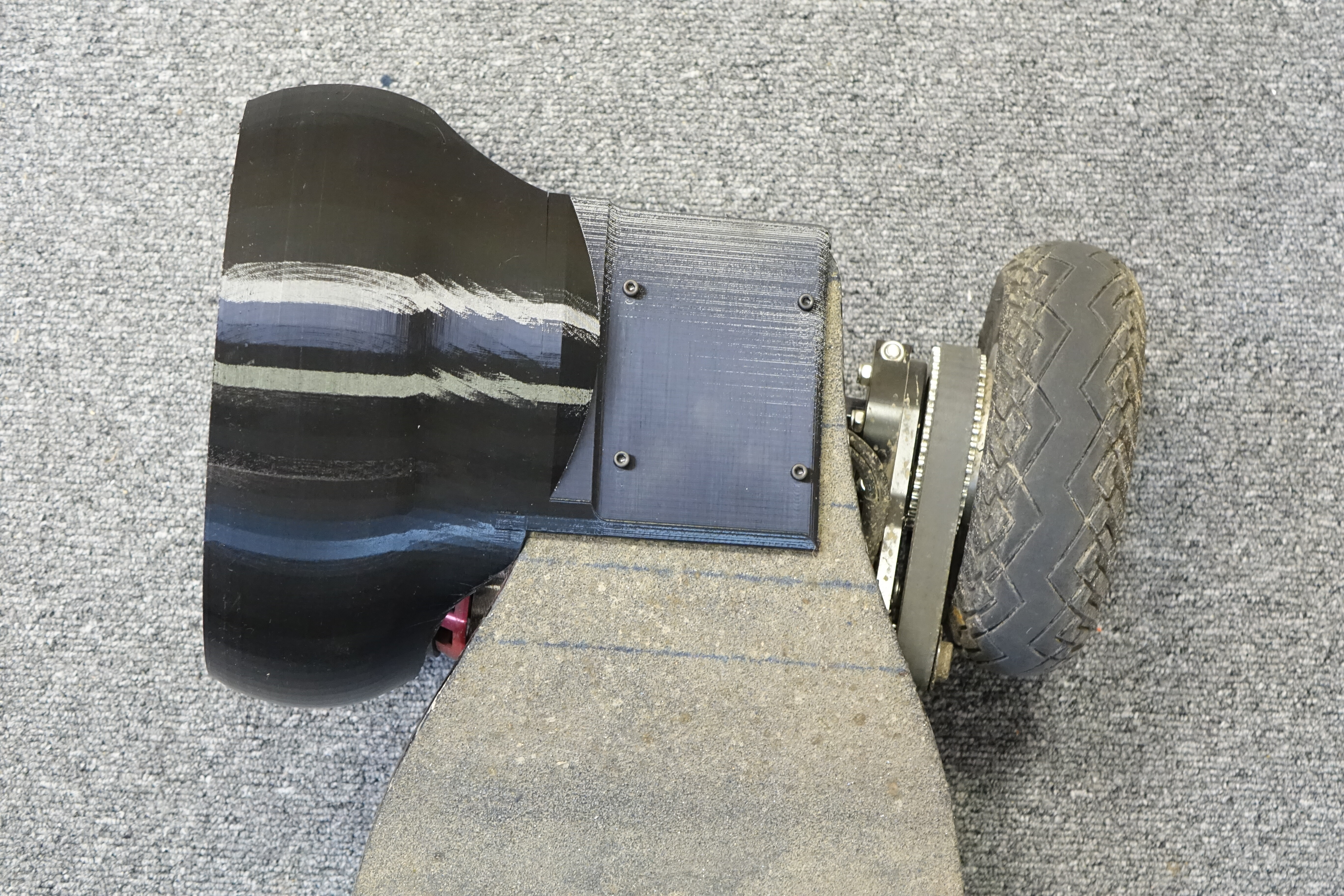 Second, there’s not enough clearance between the guard and the wheel and I was getting some wheel bite when going over corners. Since the guard is flexible it wouldn’t be the kind of wheel bite that would throw you off the board. It would merely slow the wheel a bit and cause some noise. It was still annoying.