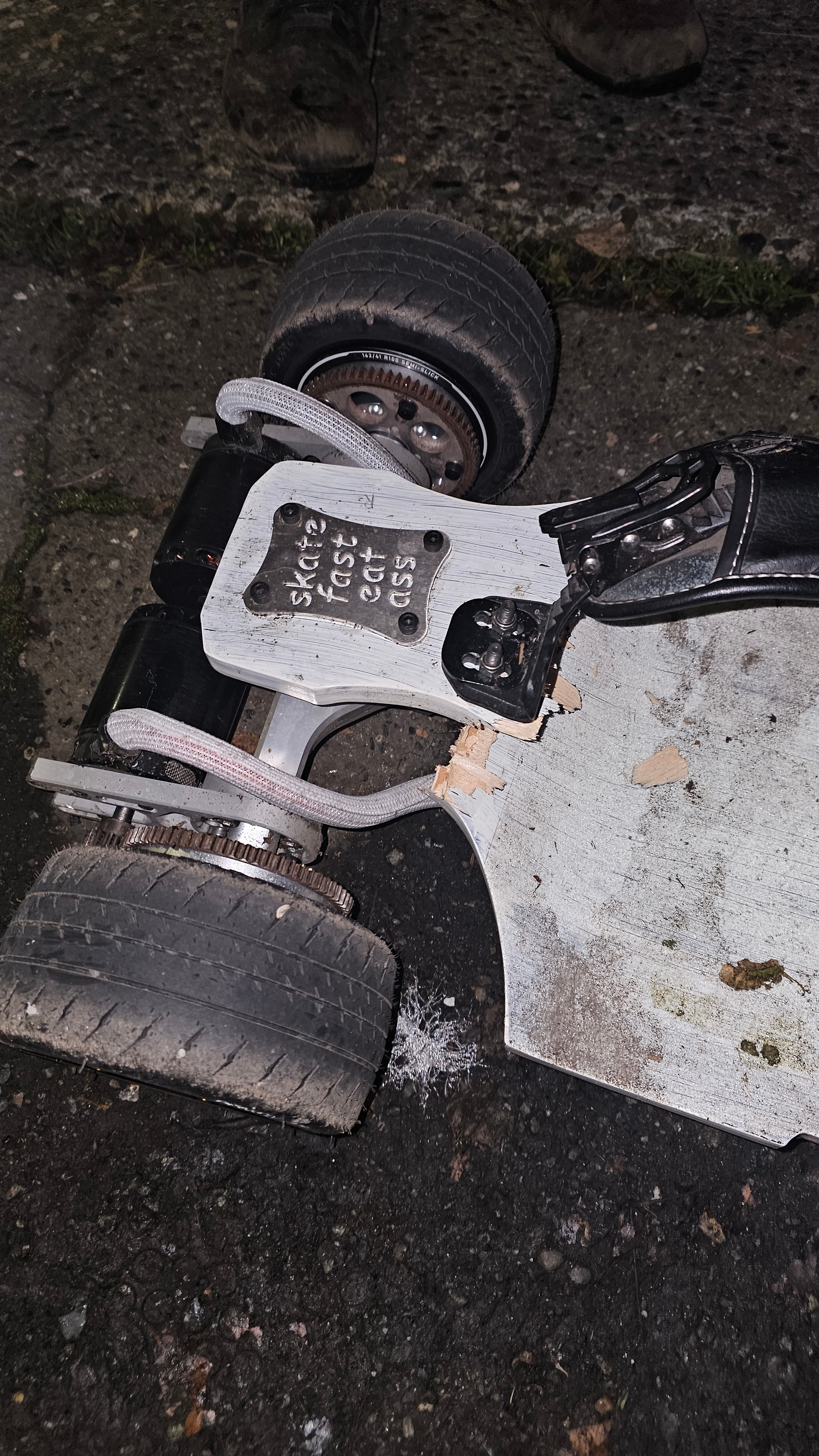 Prob, maybe… Gonna take them out to the cul de sac in the morning and check for clearance. If it barely scrapes I can prob get away with using some titanium plates to reinforce the corners, similar to what @tuckjohn did. I weight pretty little and with the deck + enclosure combo it doesn’t flex that much.