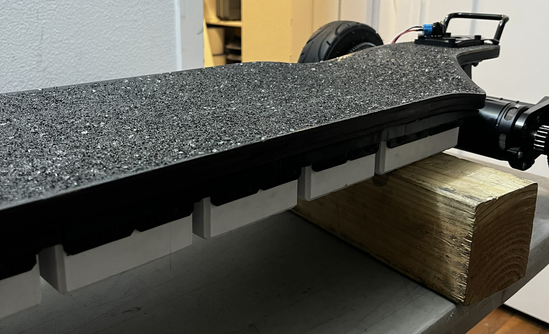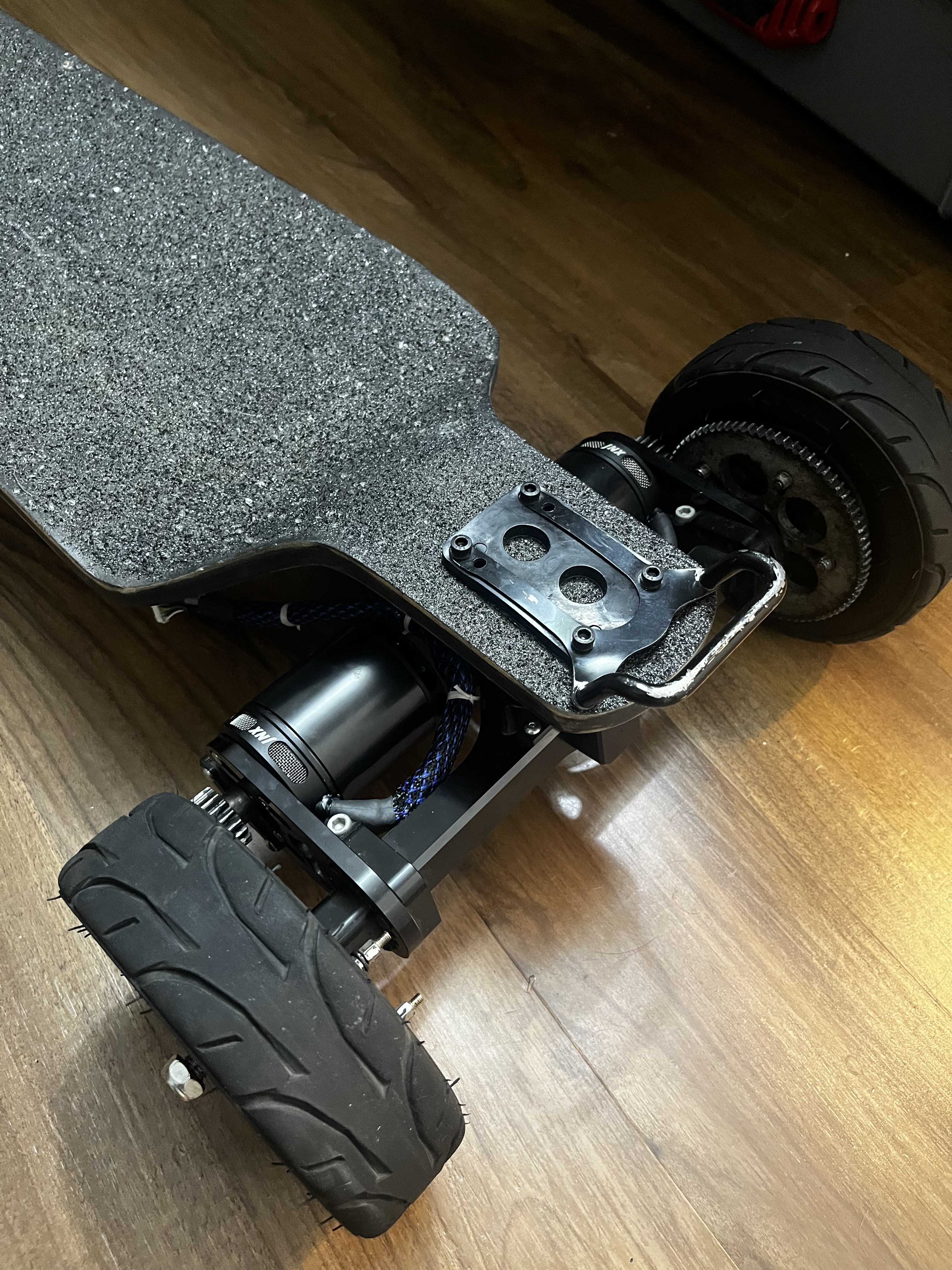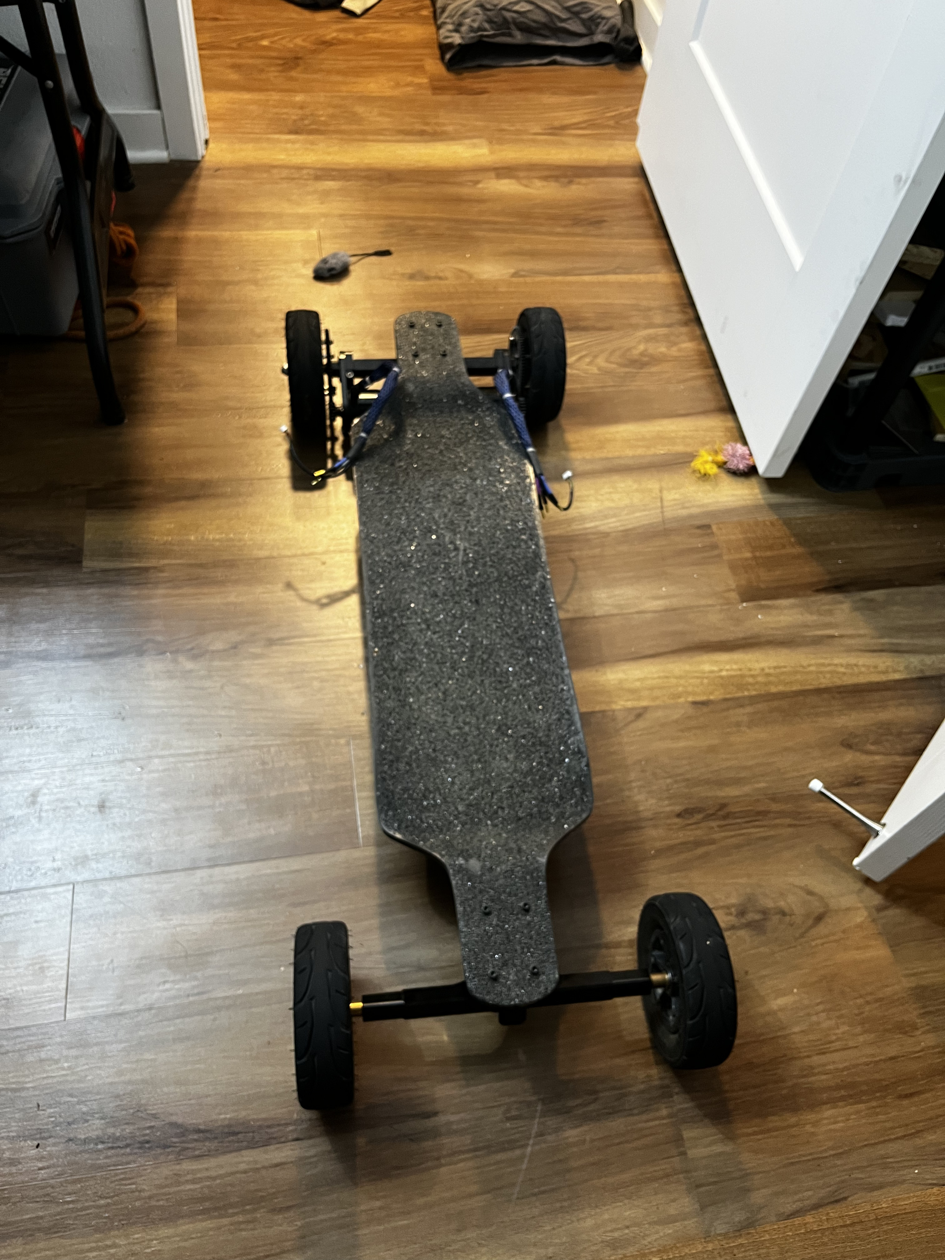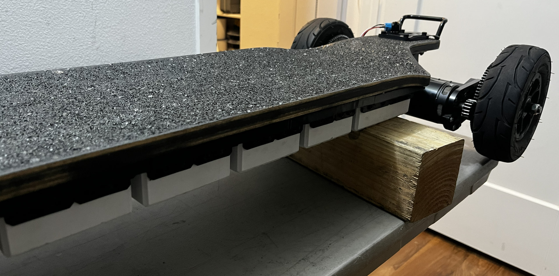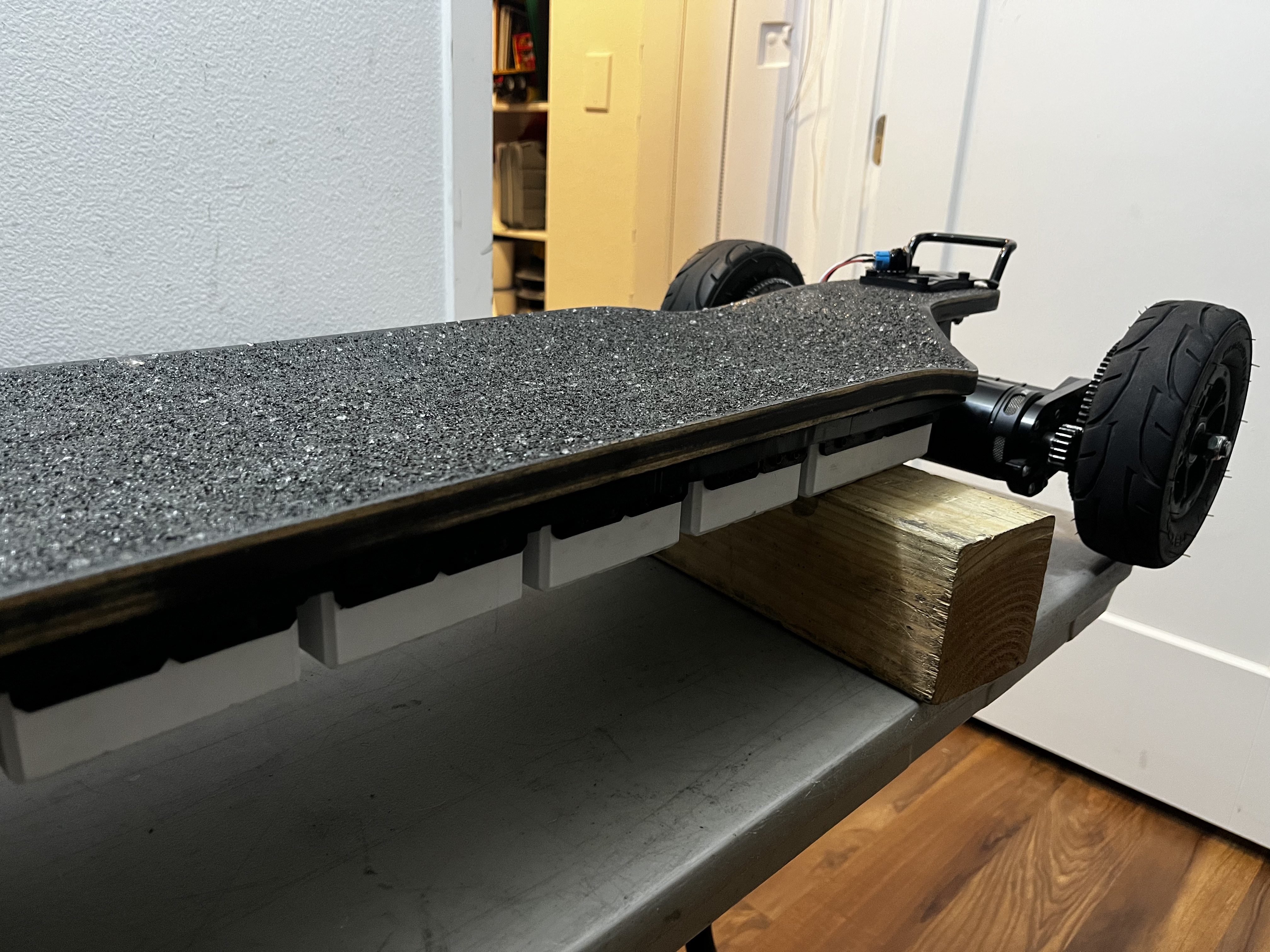 The BMS sits in this extra compartment in the enclosure. From the wiring, it seems like this board originally had a rear-mounted ESC box… but I think I can squeeze the vesc in there too (and avoid a rear-mount box