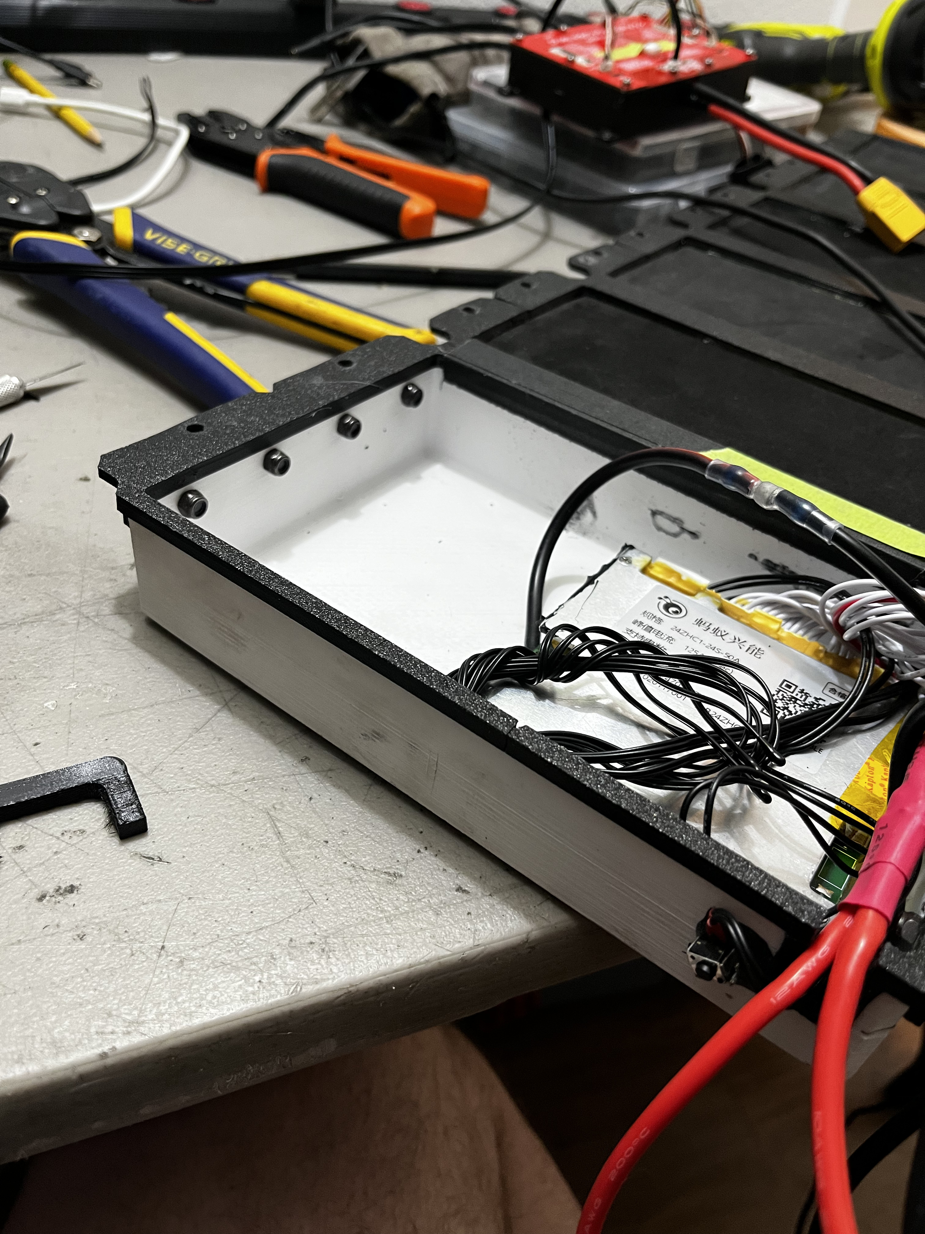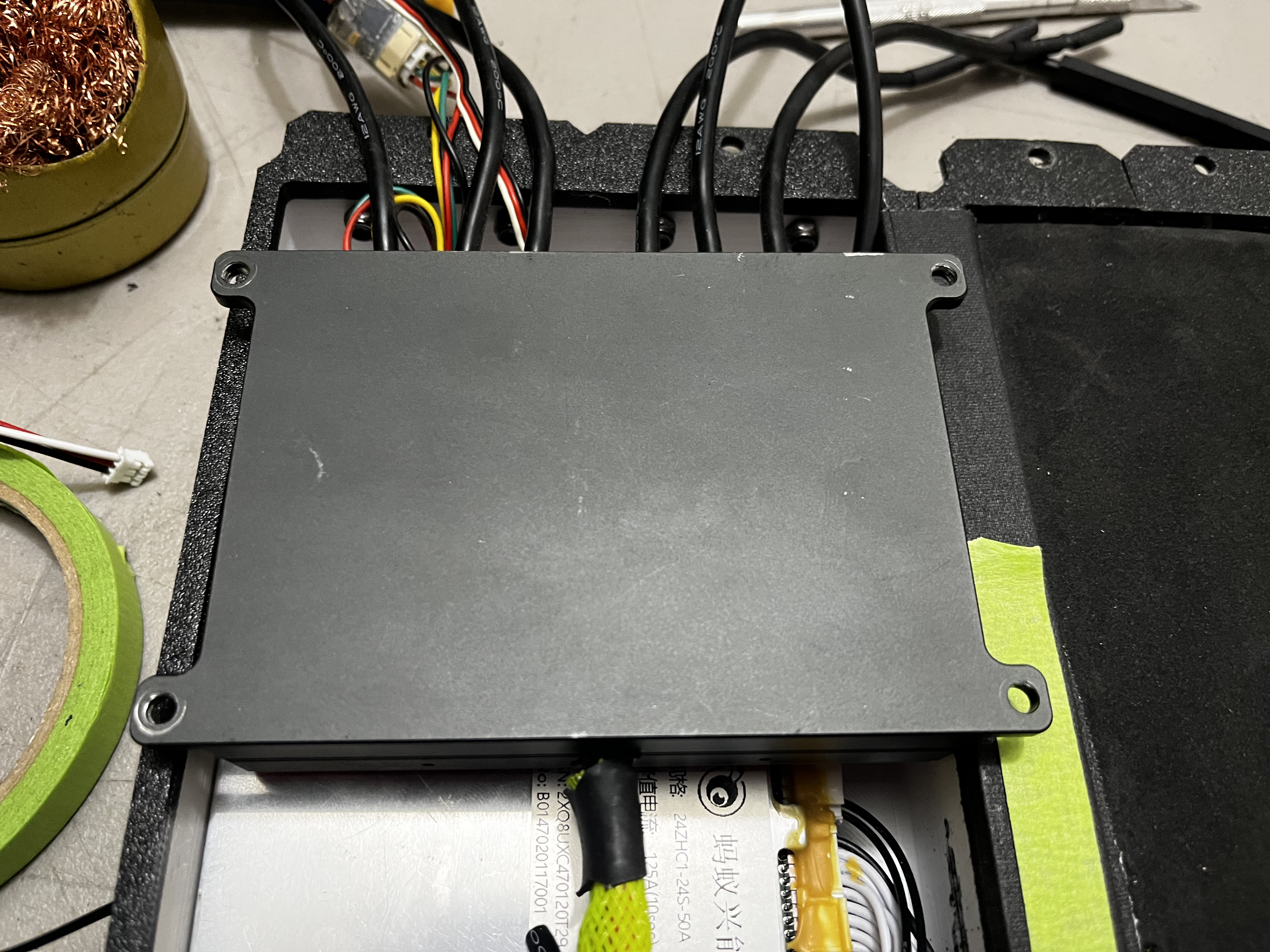 @TZDKB generously gifted me this battery and enclosure a year or two ago. IIRC it’s 16s liion pouch cells, built into a perfect 3D printed enclosure.
