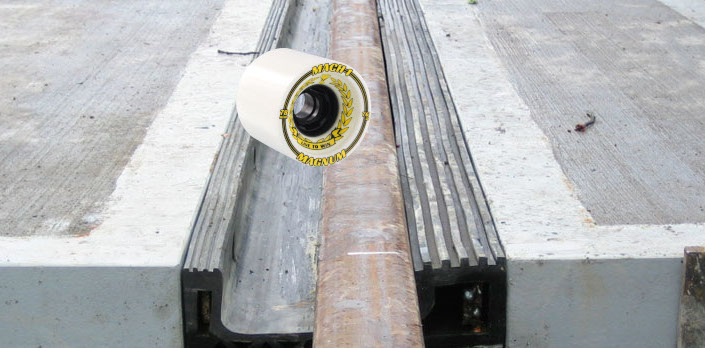 Width does other magical things, like allow you to sail right over some railroad tracks on Venom Magnum 78mm wheels. This is solely because they’re 70mm wide… … but that’s wide enough to almost bridge this gap if you hit it at a small angle: