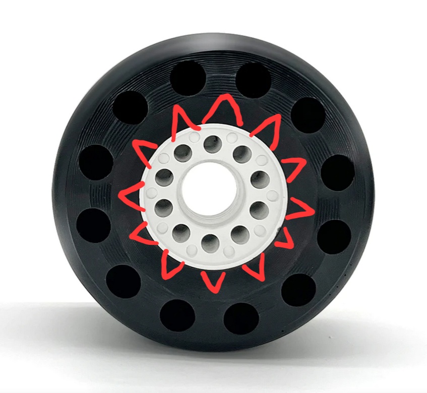 For a dedicated esk8 wheel, I wonder if adding something like this to the core