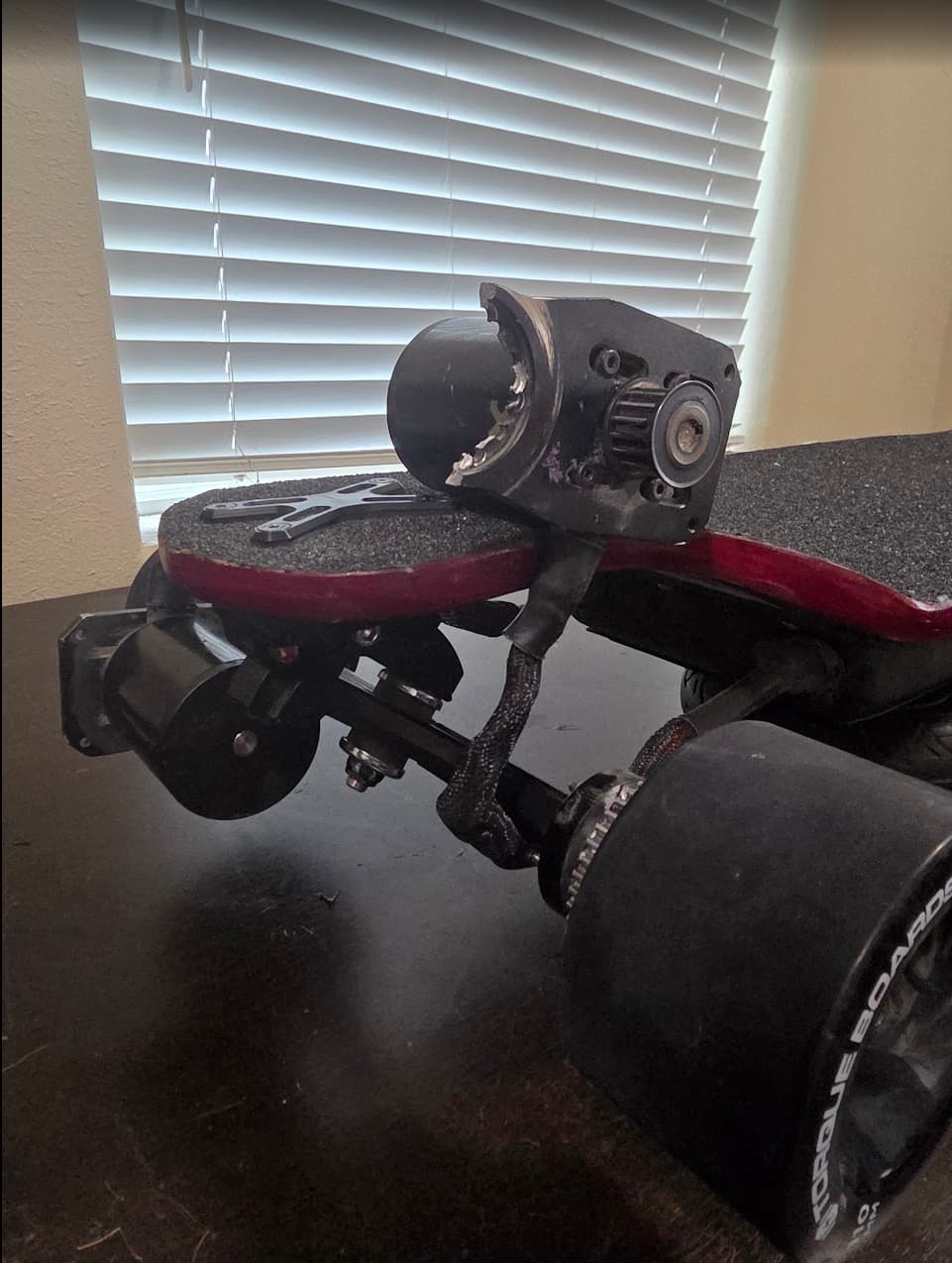 I wanted relatively wide hangers that are BN220 alternatives and found BKBs trucks to be 238 mm wide and dirt cheap, but they don’t sell motor mounts… So I bastardized TB motor mounts on. I’m sure you know, but you need LOOONG motor mounts if you are reverse mounting the motors. TB motor mounts are one of the longest (longer than Kevin’s XL mounts, which for me were a few mm too short). IDEA boards also makes super long mounts that can be clamped on to BN hangers. I found IDEA’s clamp retention mechanism (grub screws) less resistant to being shaken loose compared to BN or TB’s clamps. Once the motor mounts start vibrating, they mar the hangers and you’re in a losing battle to properly fixate the mounts.