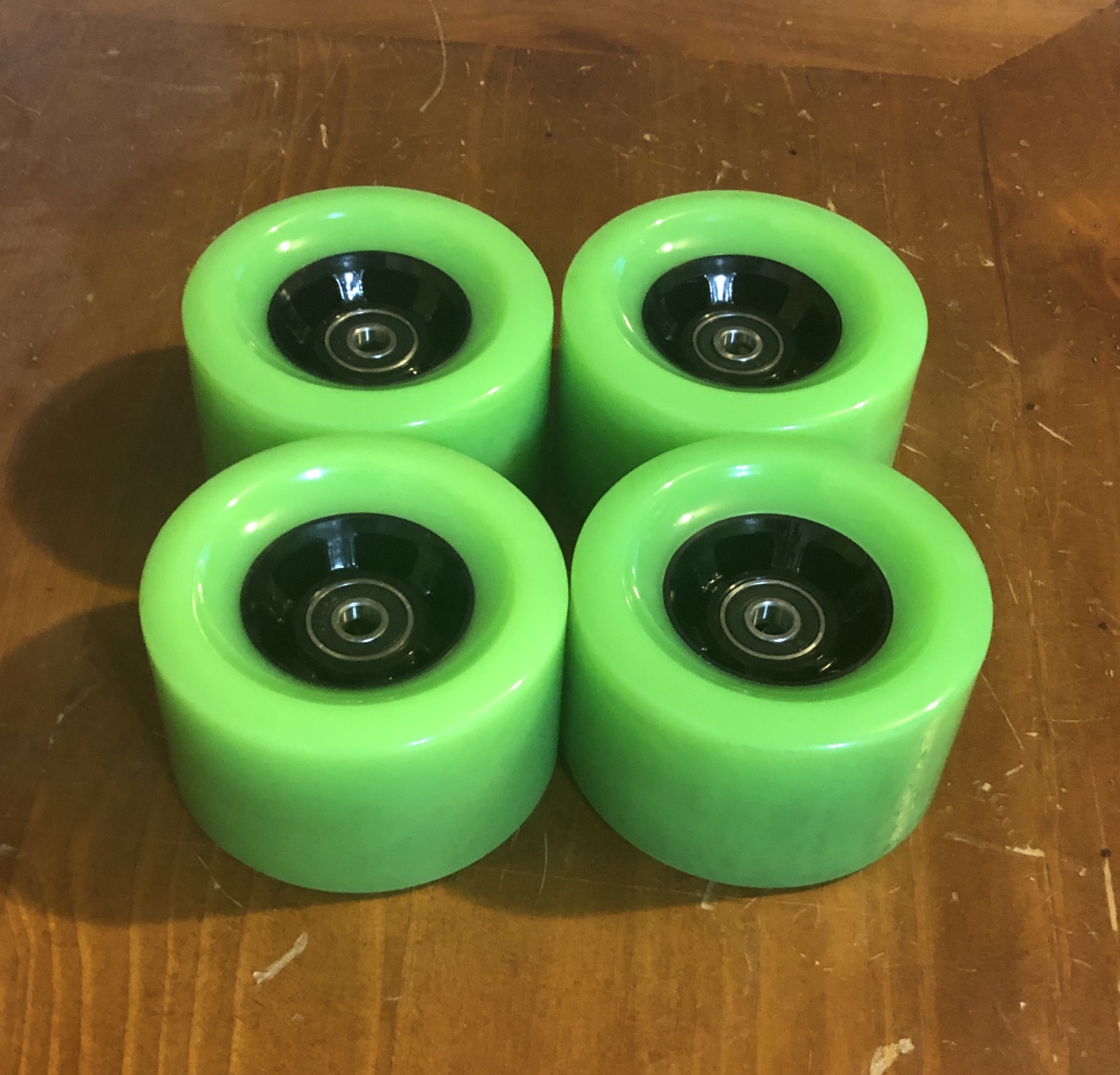 Selling the green wheels from the ownboard W2. I did one test run on these wheels before deciding I wanted to use the bigger black ones instead and so I don’t need them. Come with ceramic bearings and spacers.
