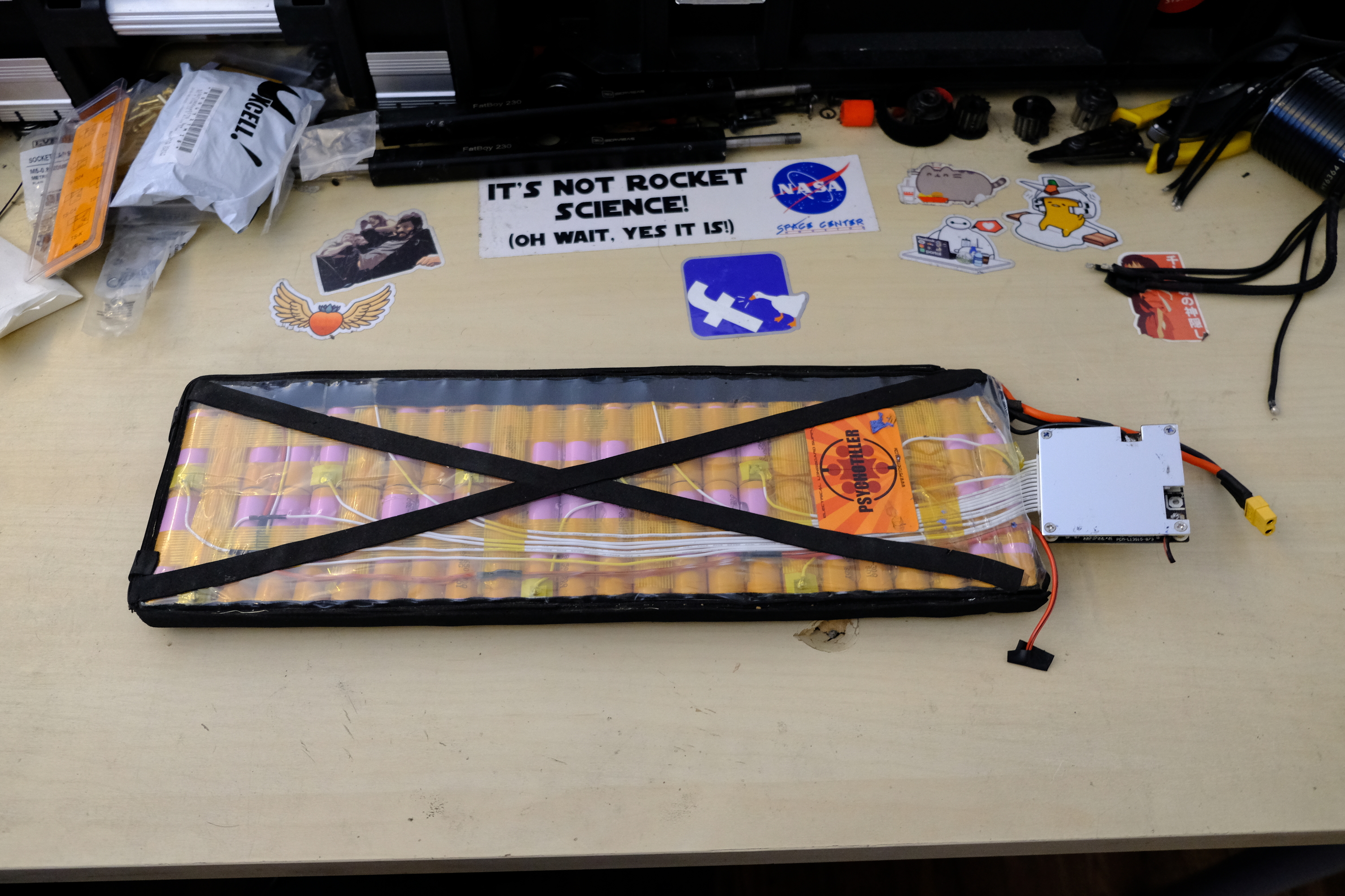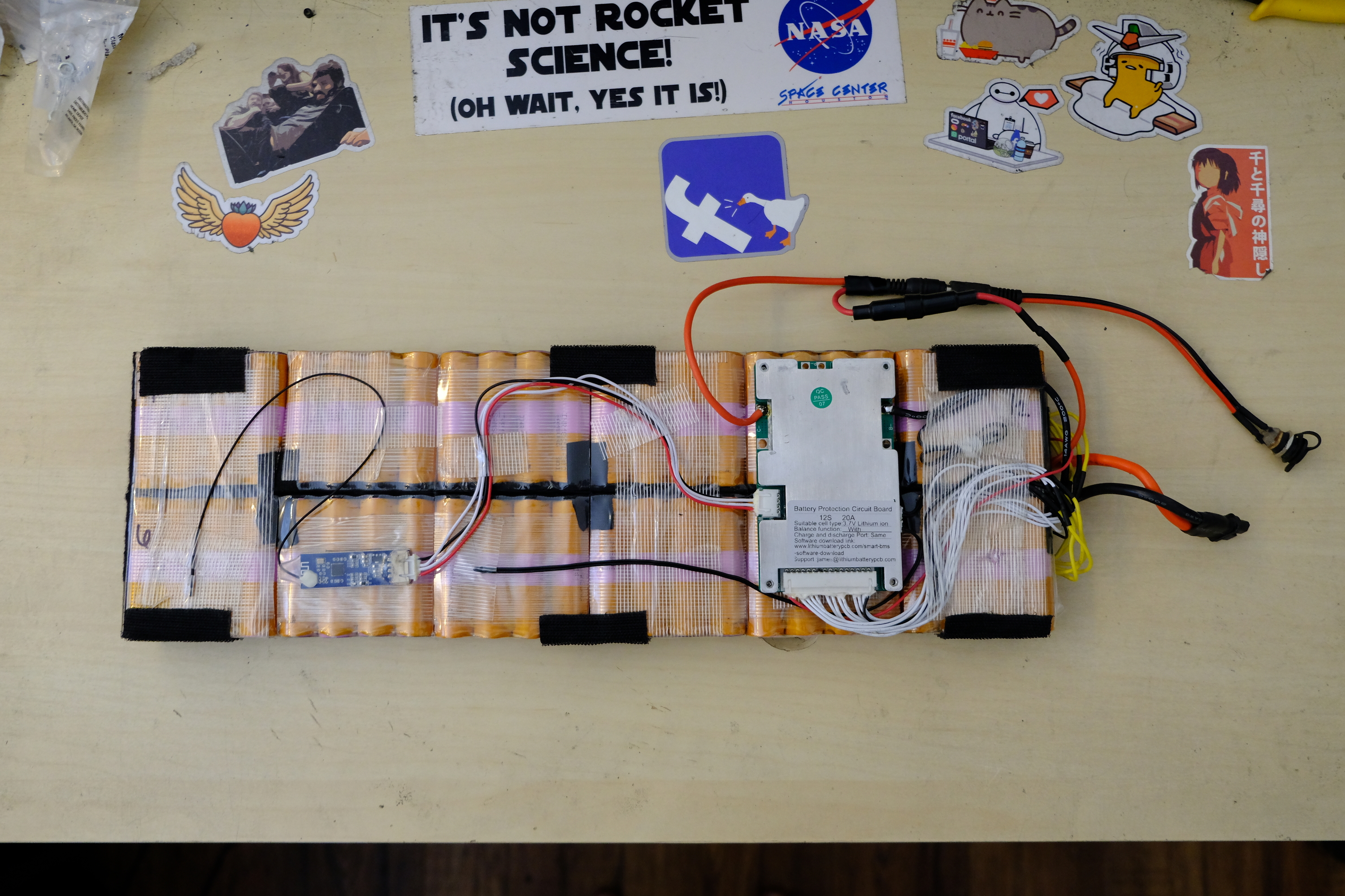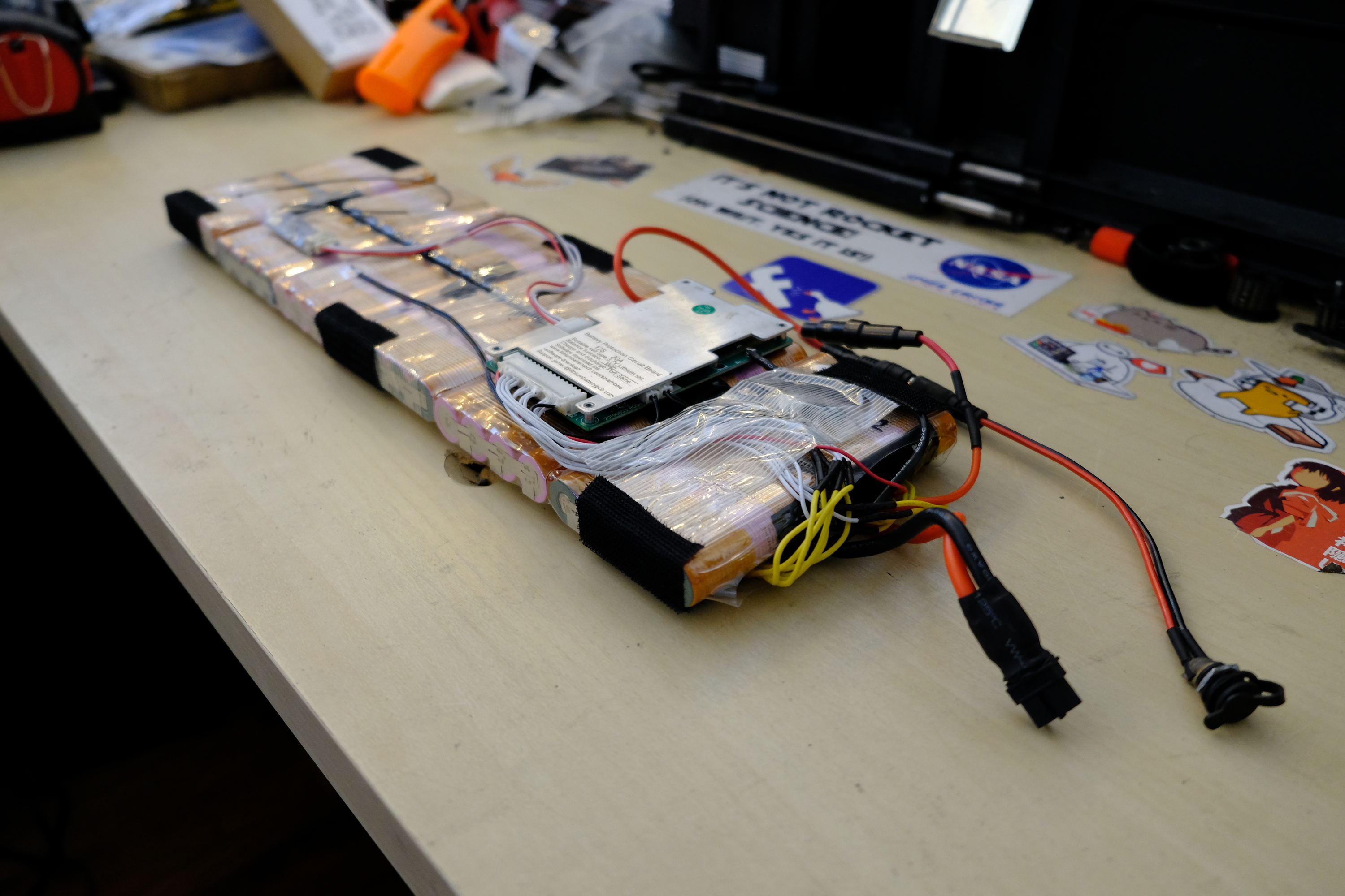 Description: My first battery, many cycles, only charges to 92% ish, rode it down to 0% multiple times, doesn’t have a charge port soldered, can add one if you want