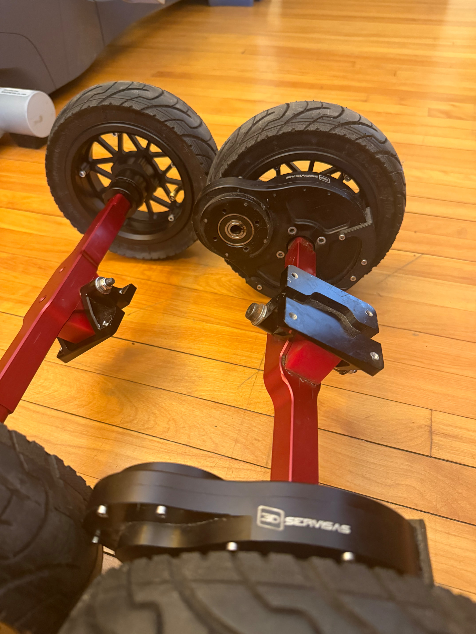 USED - 3DServisas (Gen 1) Finality AT Gear Drive 11/55 (5.1), Red BN Split Angle Trucks, Aluminum Rims (Gen 2) 8.5x3.0 wheels. (3) 8.5x3.0 optional sets of tires are included. - $600 for all listed above (includes shipping)