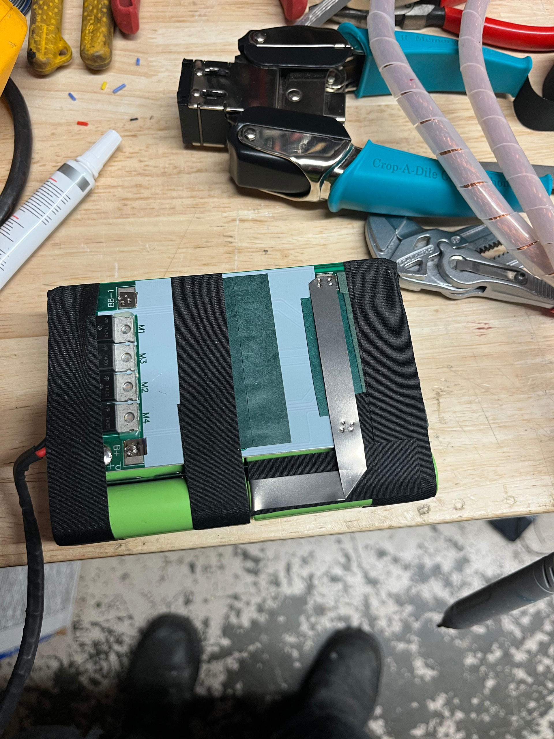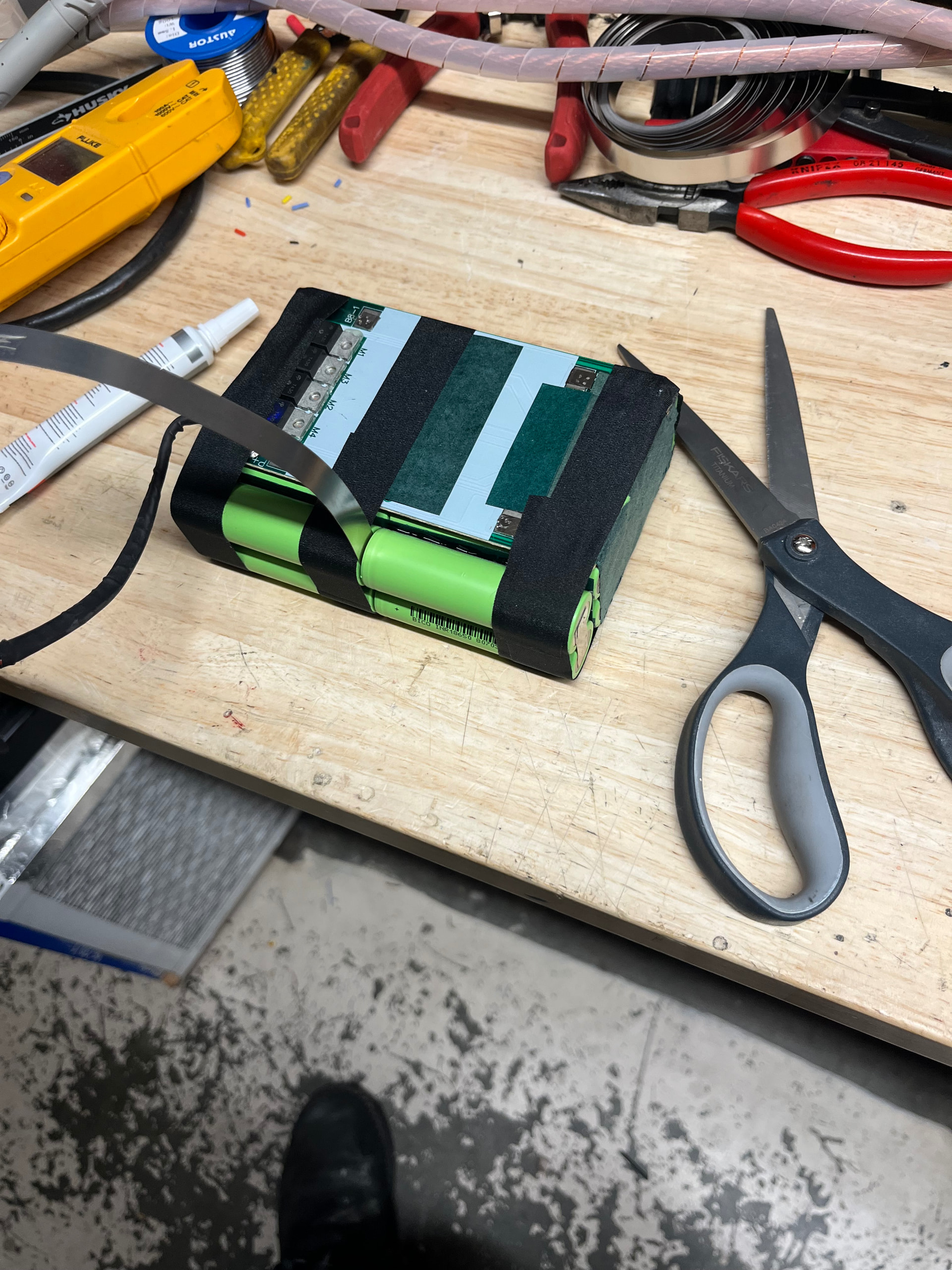 Sniped the 4 off the top after mark which went where, cleaned up all the edges and left the nickel in place. I don’t want to damage the cell cans and so im just gonna weld right on top of the flattened steel/nickel strip. You could clean it all up like sternwake but i feel like this battery in this application is too close to the good enough/ not worth it border line.