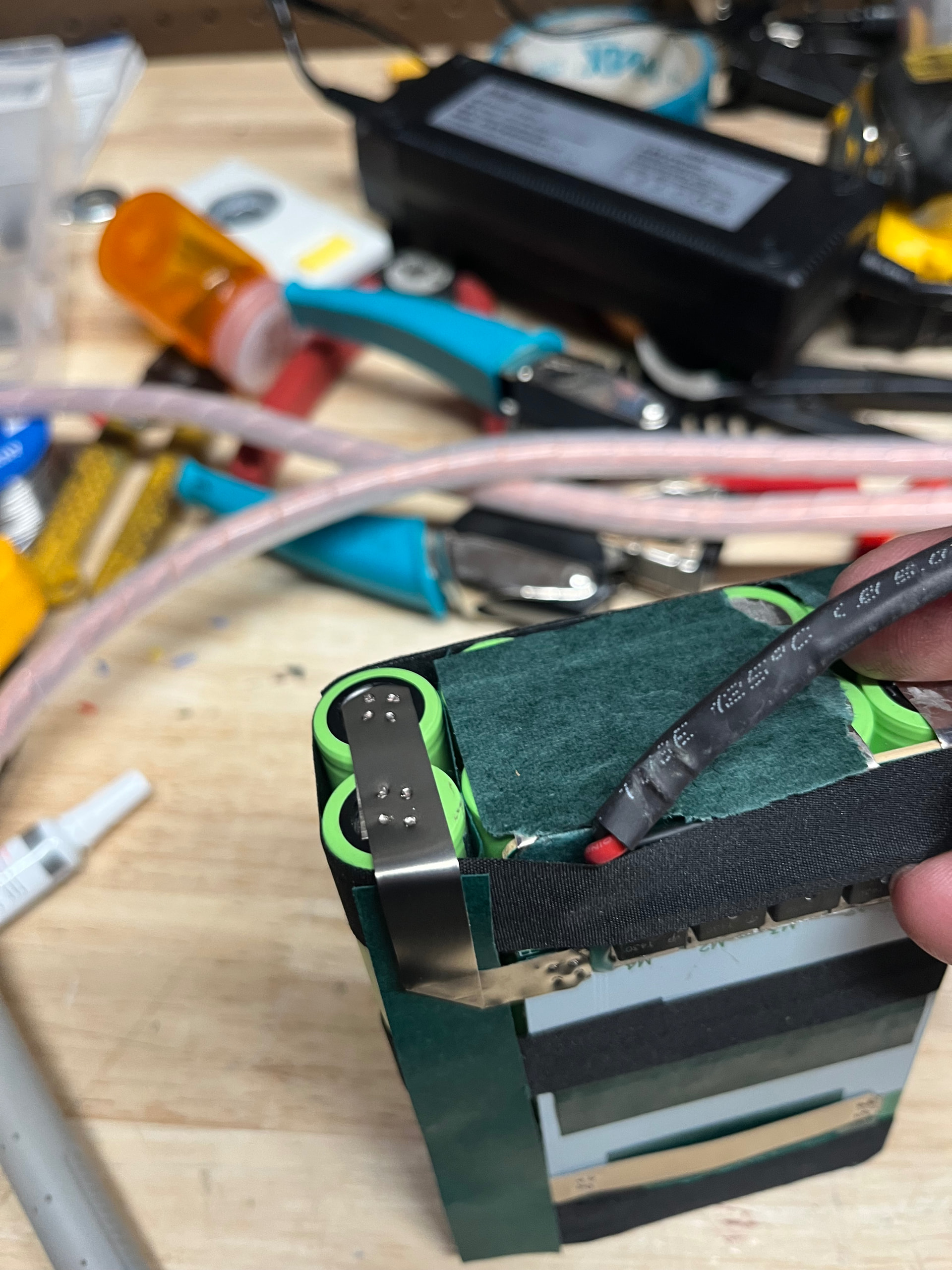 The balance wires were routed pretty well, until they got near the BMS, where they were a tangled mess, and some were in direct contact with the main Positive tab’s sharp edges There was heatshrink, but it was not covering the whole of the strip coming off the main +.