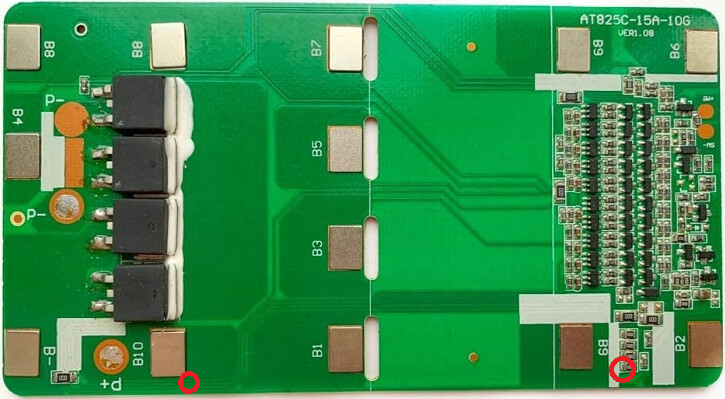 Referring to Red circled 1, the face and attachment is as such, the blue line at image 2, is nickel strip tacked on top before wiring it onto the two tabs on the BMS