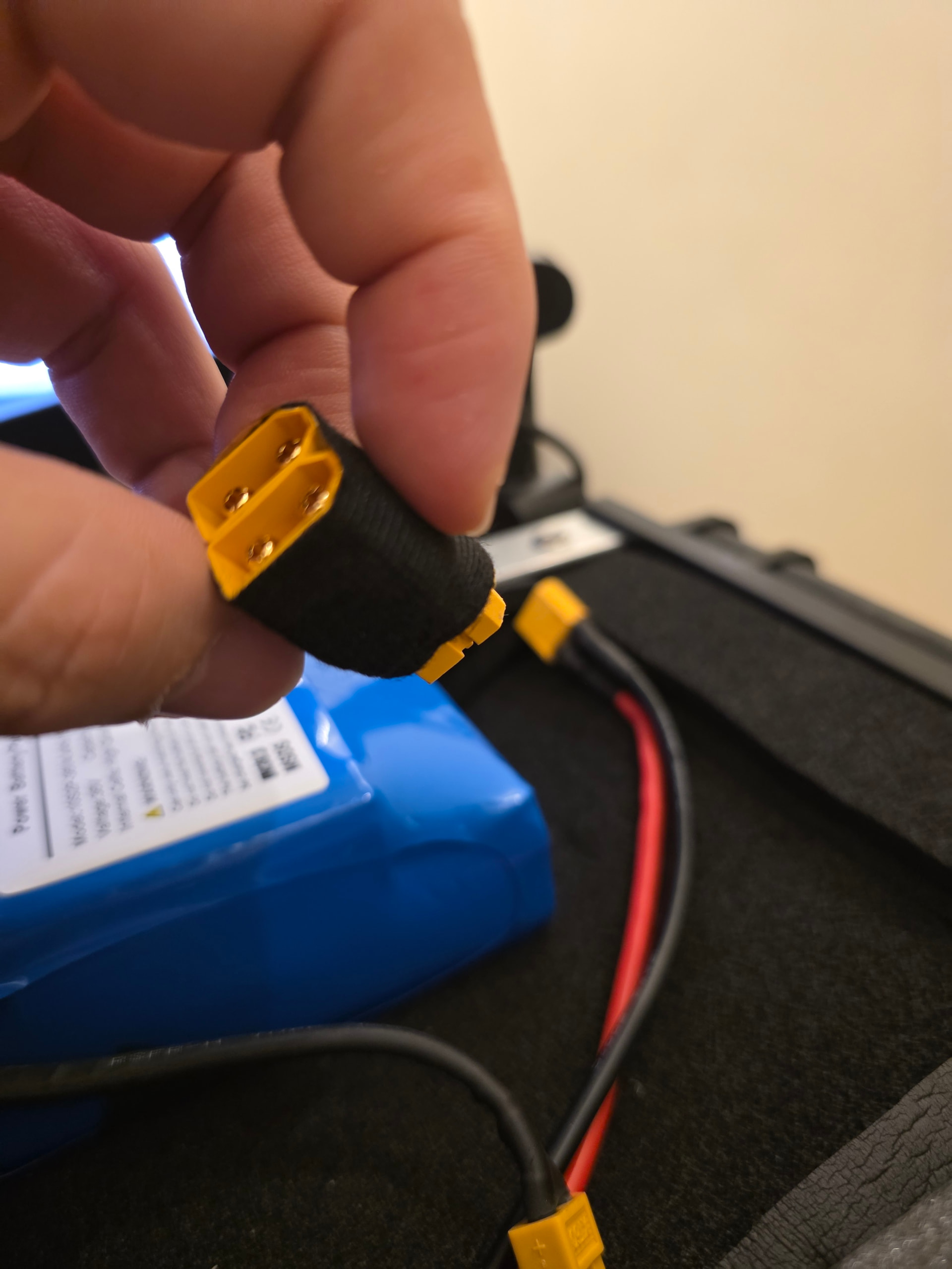 I don’t know yet, anyway, if i can figure out keeping the configuration, i can hook up dual batteries for longer range with a parallel connector (probably won’t work charging at the same time)