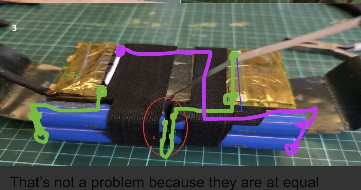That’s not a problem because they are at equal potential. Also why the strip from the center folded part is to connect to 2 points on the bms. The biggest issue is protecting the “shoulder” of the positive cells when folding as that has the potential to short.