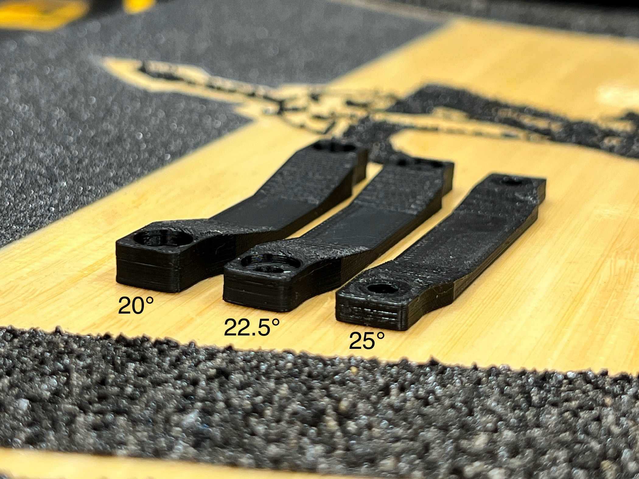 So last night I printed the other lean stoppers available from Tito to try out, just to see how they’d make the trucks react. They come stock with a 25° lean stopper, and he provided files for 22.5° and 20° stoppers.